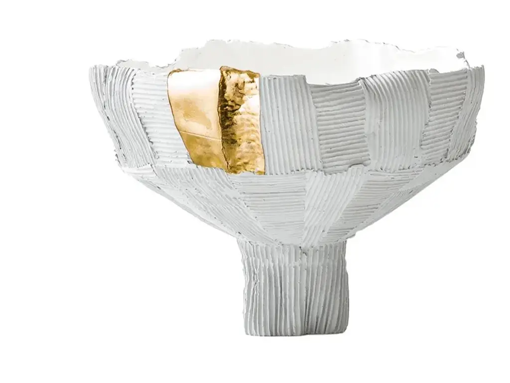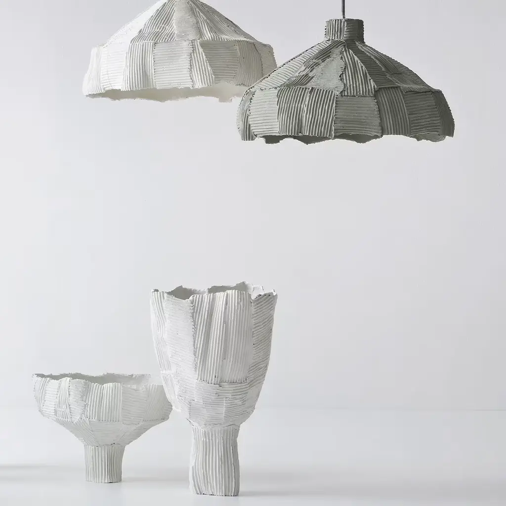 Striking in its simplicity, this one-of-a-kind bowl will exude sophistication and modern flair into a modern-styled home. Taking on a conical form with jagged outer rim, the bowl’s plain surface is distinguished for its bold horizontal and vertical ridges, hand-applied in haphazard configuration. Rendered in white paper clay, which incorporates paper pulp and fiber into the ceramic mixture, this piece has a distinctive textural finish that is elegant and modern. Every one of Paola Paronetto’s creations is unique. Slight variations in shape, colour and size are to be considered a guarantee of authenticity and value. They are finished with non-toxic satin-finish enamels. Although very rarely, it is possible for them to leak after long periods of exposure to water. It is therefore advisable to test their water resistance before using them on delicate surfaces. They should not be used as dining utensils. The white pieces can be washed with water or sanitizing products, whereas the coloured pieces must be treated more gently and cleaned with a feather duster or a soft cloth, dry or moistened very slightly with water.