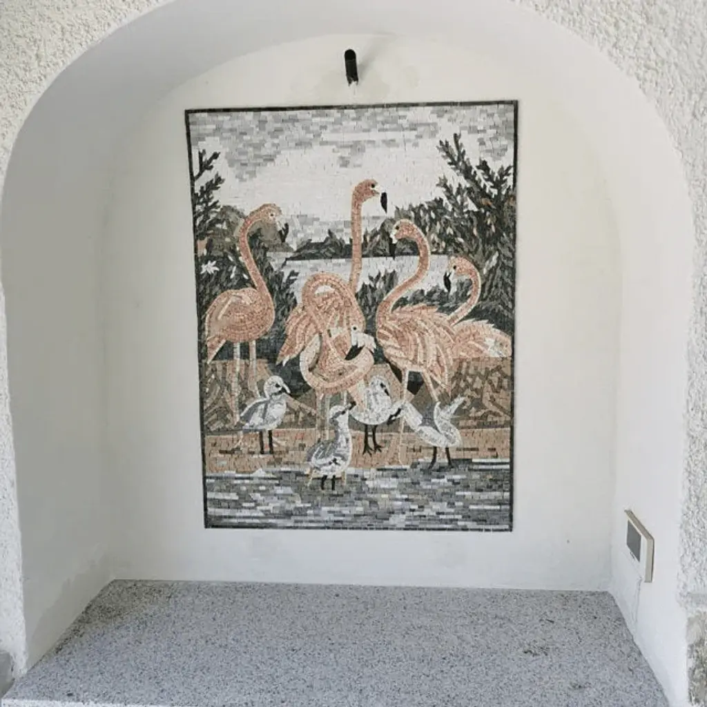 Introducing our exquisite "Animal Mosaic Designs - Pink Flamingo," a dazzling centerpiece that brings the radiant beauty of nature into your home or garden. This premium handcrafted stone art is meticulously created from all-natural stones and hand-cut marble tiles, ensuring each piece is unique and of the highest quality. Envision a serene scene where elegant pink flamingos wade gracefully in the cool, tranquil waters of a glistening lake. Every intricate detail captures the essence of these magnificent birds, portraying their vibrant hues and graceful stance with stunning artisan precision. The interplay of natural stone textures adds depth and luminous dimension, creating a captivating visual masterpiece that draws the eye and sparks conversation. Whether enhancing your indoor décor or serving as a bold statement piece for your outdoor space, this luxury mosaic art complements a wide range of design styles, from modern contemporary to rustic charm. Crafted with durable, premium quality materials, it withstands the elements outdoors while maintaining its radiant elegance indoors, adding a touch of sophistication to any room. Transform your surroundings with a piece that celebrates the wonders of wildlife and artistry. Our "Animal Mosaic Designs - Pink Flamingo" is more than just art; it is a tribute to nature’s beauty that you can cherish for years to come. Elevate your décor and make a captivating statement with this exceptional handcrafted stone mosaic. Bring the charm of pink flamingos to your space today!