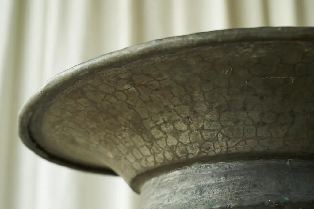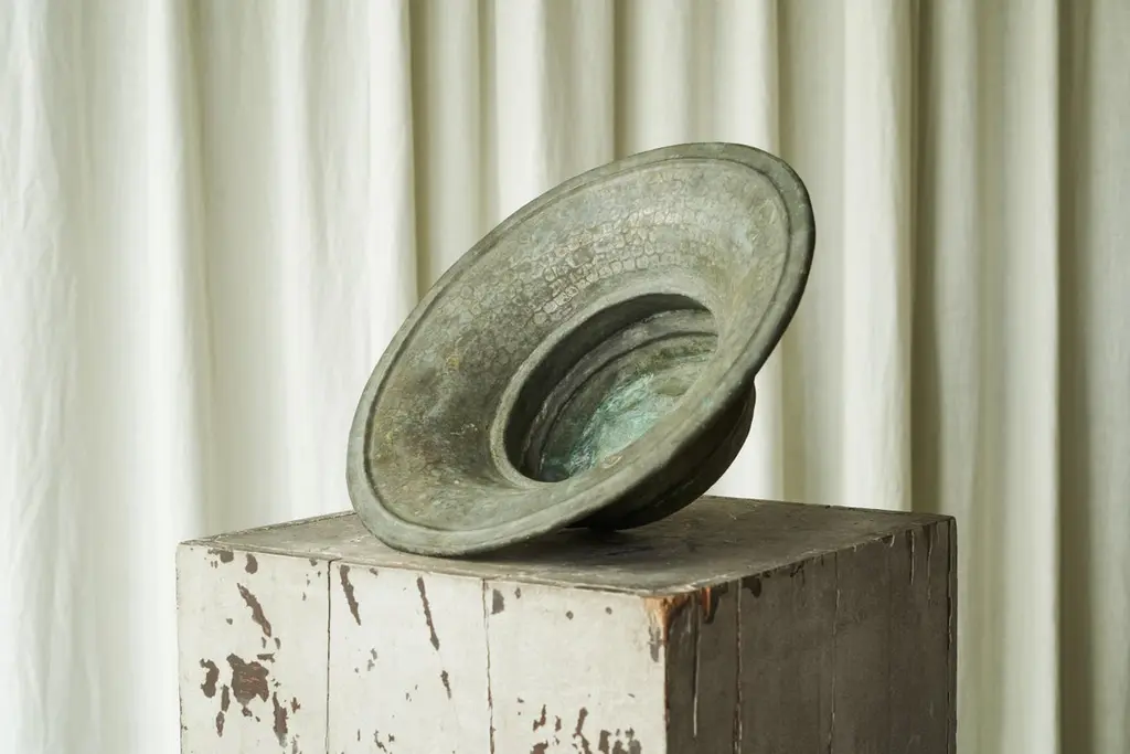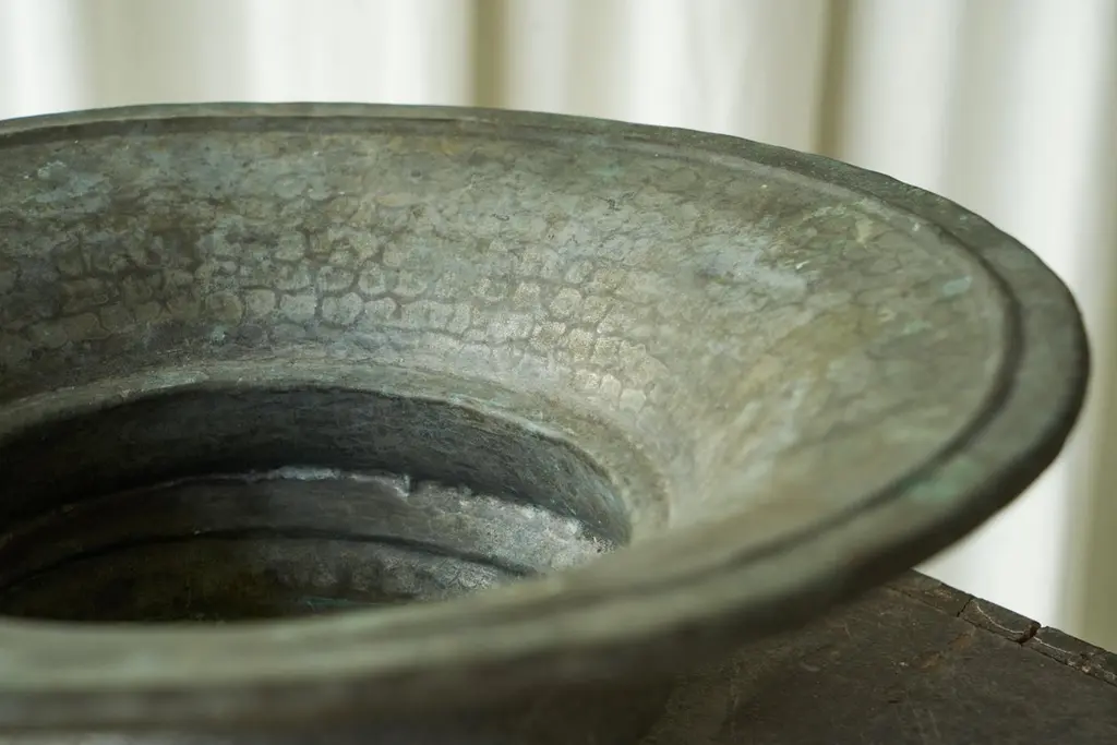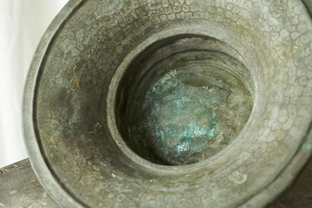 Antique Wabi Sabi Centerpiece In Verdigris Patinated Copper