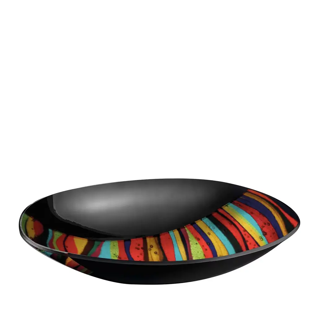 This exquisite centerpiece will be a vibrant addition to both a modern or classic decor. Boasting a round silhouette, the piece combines opaque and transparent glass. Timeless and versatile, it is part of a series of Murano glass objects inspired by the colorful and eclectic Carnival of Venice.