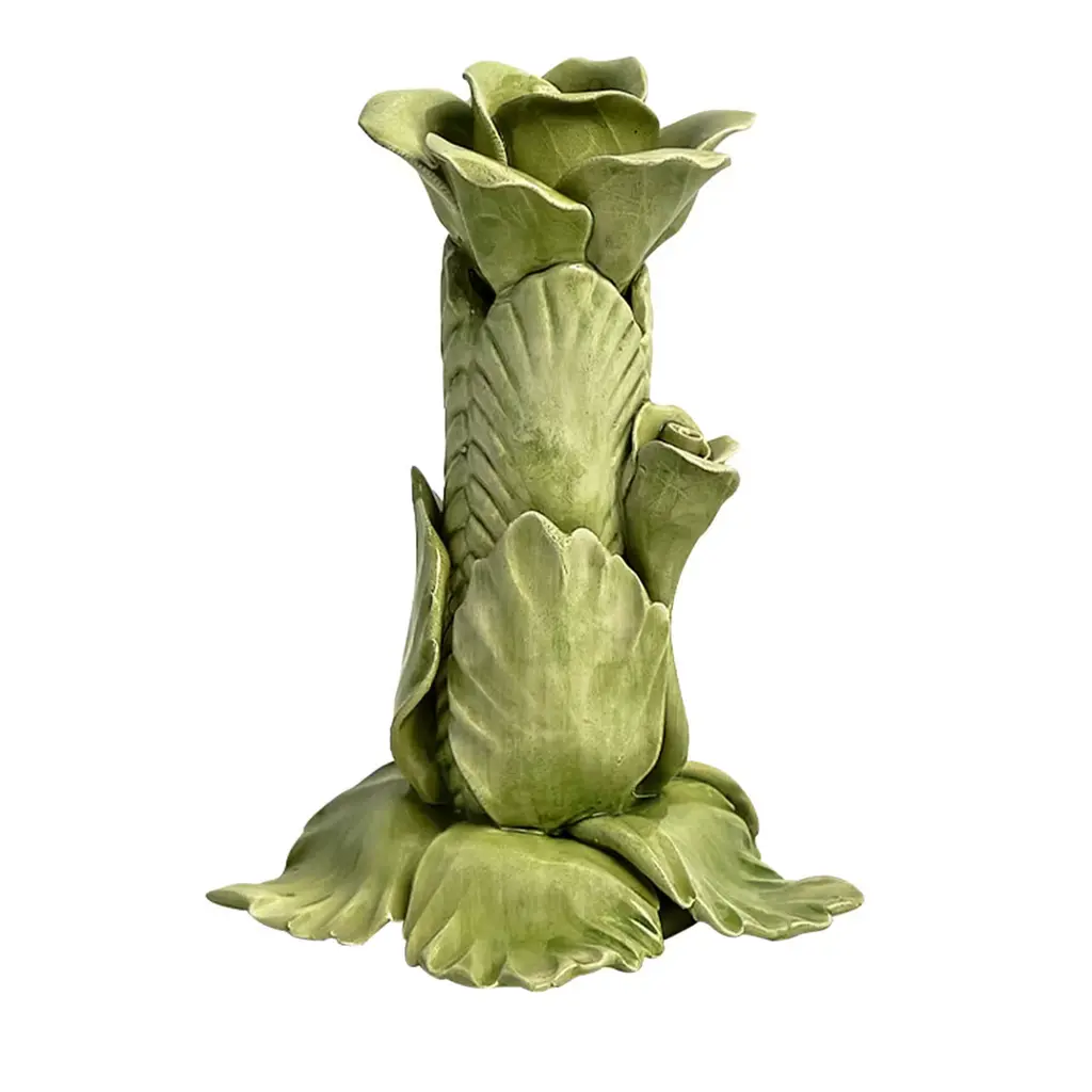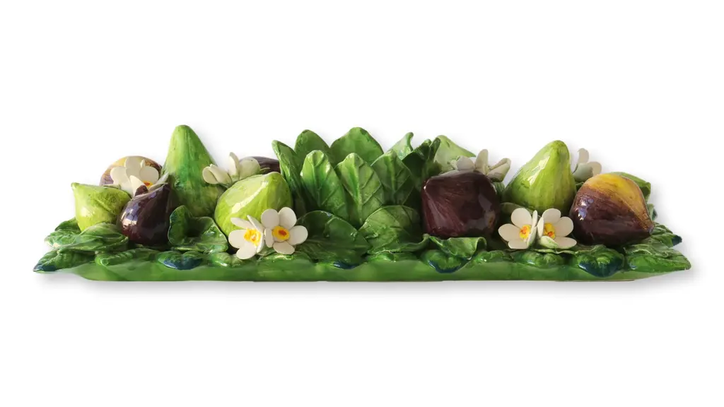 The Artichoke Centerpiece is a tribute to the long standing relationship between Mottahedeh & Co. and Basso, a manufacturer in Italy. The piece reproduces one of the first objects Mottahedeh made in Italy. Finely detailed artichokes form a pyramid which astounds and delights the eye. Painted with green, pink, magenta and touches of gold. A favorite with brides, Mottahedeh specializes in luxurious patterns and unique, elegant shapes that are reproduced from china found in museums and historical societies. The patterns feature complex and vibrant colors, and hand-painted gold decoration. The pieces are surprisingly fresh and timely, and look wonderful in both contemporary and traditional dining rooms.