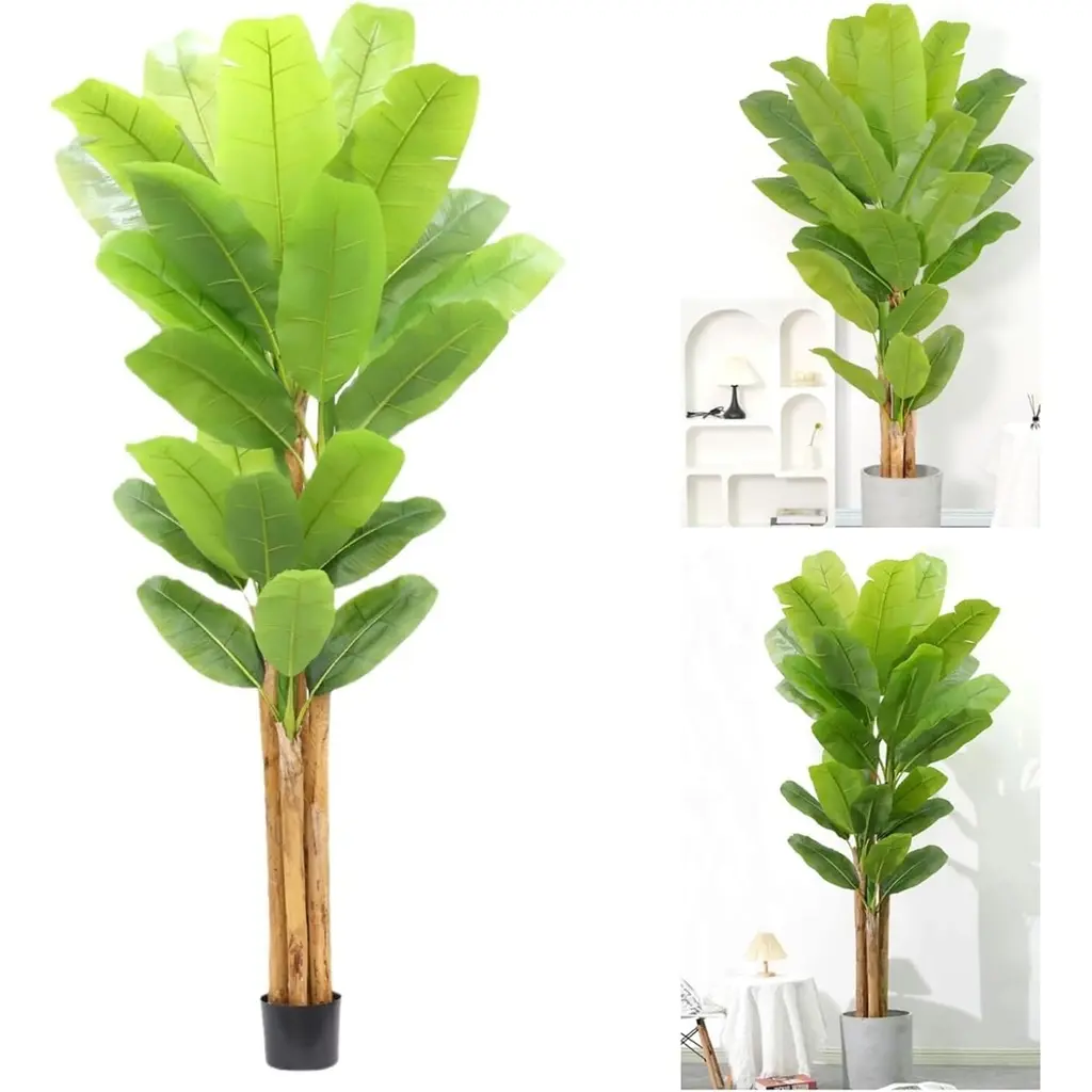Vivid and full appearance: The 6.2-foot tall artificial banana tree has 10 upper leaves and 7 lower leaves and double realistic stems, and the 6.9-foot tall artificial banana tree has 7 middle leaves and 7 lower leaves.Premium materials: The banana tree is made of quality PEVA leaves and PE stems, no odor, no allergy, not easy to fade or crack, to ensure long-term use.Strong and stable structure: The artificial banana tree is supported by sturdy POTS, built in cement and a sturdy trunk that keeps the tree stable and upright at all times.Maintenance free, stay evergreen: Compared to real plants that wilt or fade easily and require careful maintenance, our artificial plants are not affected by the seasons, while always staying active.Versatile decor: Whether you need a beautiful centerpiece for your living room, a charming decor for your office, or an elegant decor for a special event. It effortlessly fits in with any occasion or circumstance.