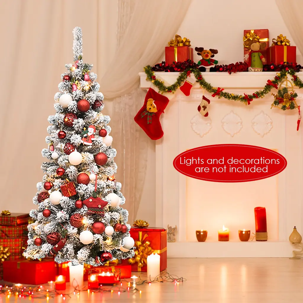 Artificial Snow Flocked Christmas Tree Unlit Pencil Hinged Tree - 4.5 Foot