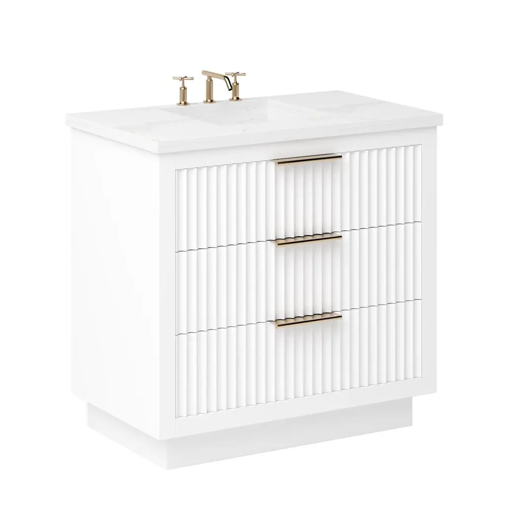 The Ashford Three-Drawer Single Bathroom Vanity is a masterpiece of contemporary design, exuding elegance with its sleek scalloped details that breathe new life into any bathroom space. This vanity is not just a piece of furniture; it's a statement of style and functionality, crafted to stand the test of time. Its freestanding design showcases a bold two-inch frame that proudly accentuates the soft-close doors and drawers, all enveloped in a luxurious satin varnish. Whether you desire a single or double configuration, the Ashford collection offers a variety of sizes to perfectly fit your space. With its versatile design, this vanity promises to be the centerpiece of your bathroom, offering both beauty and practicality in equal measure.