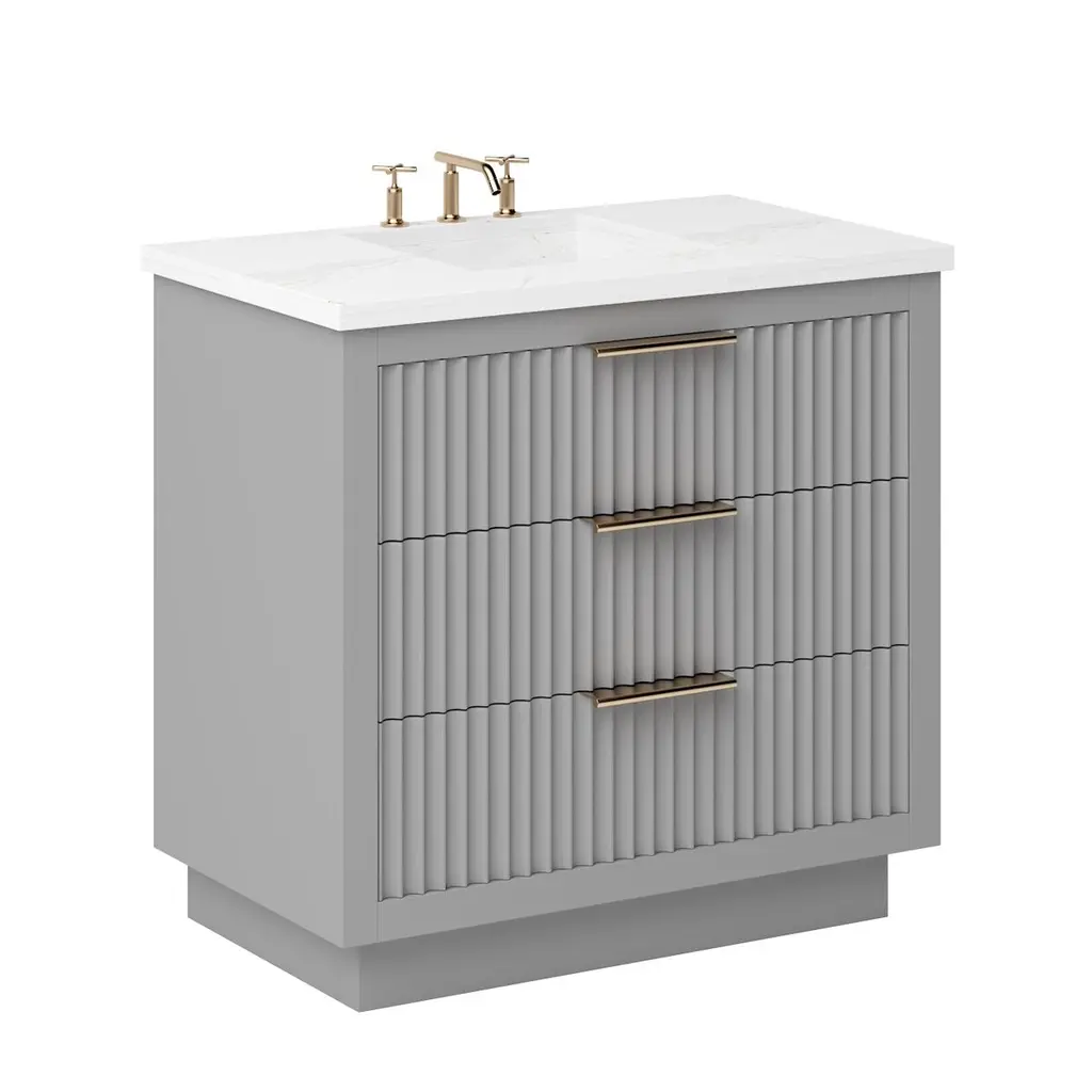 The Ashford Three-Drawer Single Bathroom Vanity is a masterpiece of contemporary design, exuding elegance with its sleek scalloped details that breathe new life into any bathroom space. This vanity is not just a piece of furniture; it's a statement of style and functionality, crafted to stand the test of time. Its freestanding design showcases a bold two-inch frame that proudly accentuates the soft-close doors and drawers, all enveloped in a luxurious satin varnish. Whether you desire a single or double configuration, the Ashford collection offers a variety of sizes to perfectly fit your space. With its versatile design, this vanity promises to be the centerpiece of your bathroom, offering both beauty and practicality in equal measure.