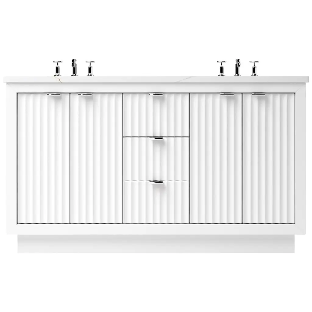 The Ashford Three-Drawer Single Bathroom Vanity is a masterpiece of contemporary design, exuding elegance with its sleek scalloped details that breathe new life into any bathroom space. This vanity is not just a piece of furniture; it's a statement of style and functionality, crafted to stand the test of time. Its freestanding design showcases a bold two-inch frame that proudly accentuates the soft-close doors and drawers, all enveloped in a luxurious satin varnish. Whether you desire a single or double configuration, the Ashford collection offers a variety of sizes to perfectly fit your space. With its versatile design, this vanity promises to be the centerpiece of your bathroom, offering both beauty and practicality in equal measure.