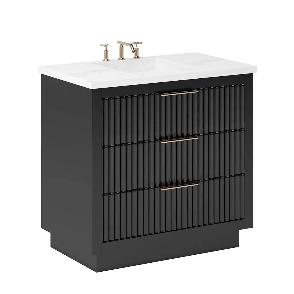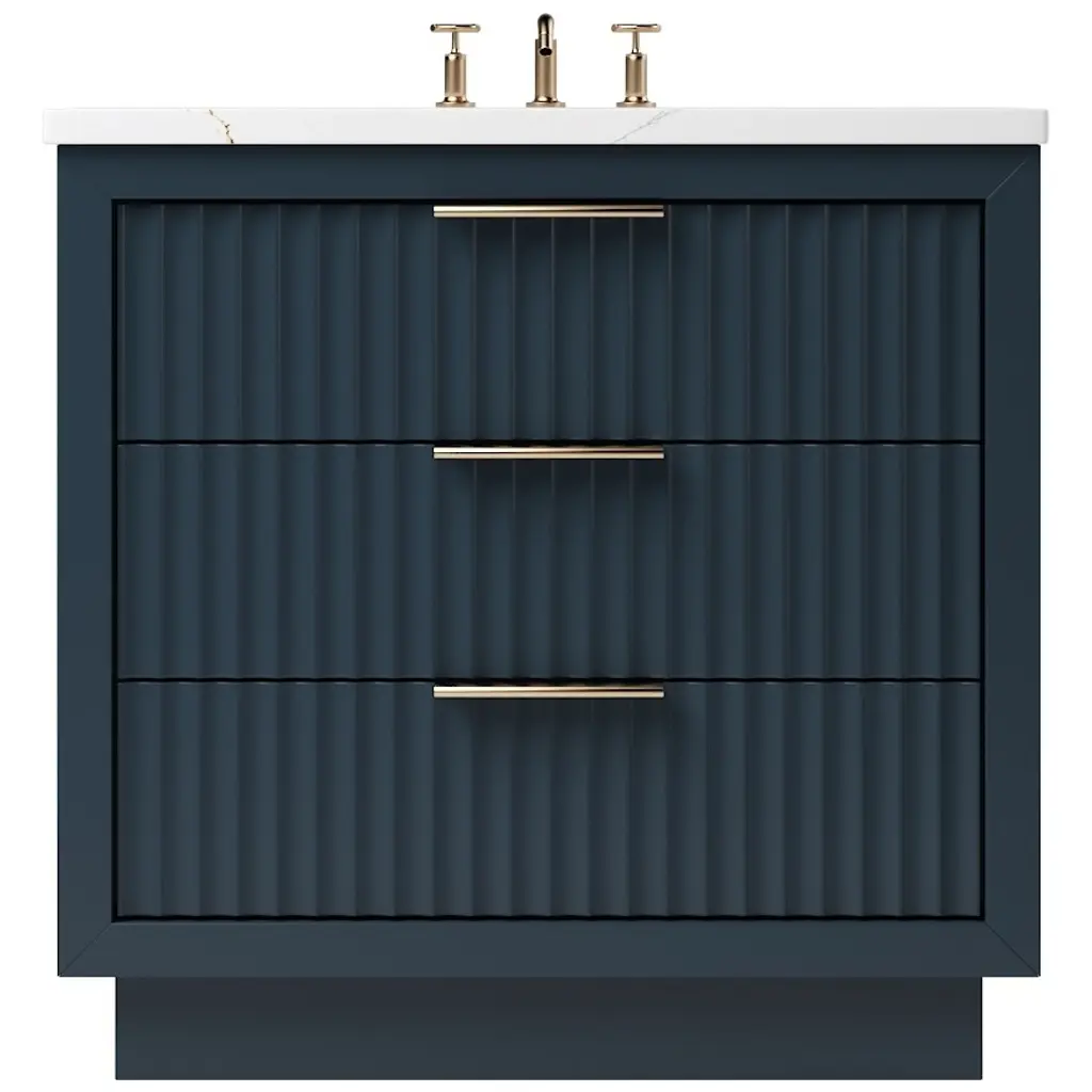 The Ashford Three-Drawer Single Bathroom Vanity is a masterpiece of contemporary design, exuding elegance with its sleek scalloped details that breathe new life into any bathroom space. This vanity is not just a piece of furniture; it's a statement of style and functionality, crafted to stand the test of time. Its freestanding design showcases a bold two-inch frame that proudly accentuates the soft-close doors and drawers, all enveloped in a luxurious satin varnish. Whether you desire a single or double configuration, the Ashford collection offers a variety of sizes to perfectly fit your space. With its versatile design, this vanity promises to be the centerpiece of your bathroom, offering both beauty and practicality in equal measure.