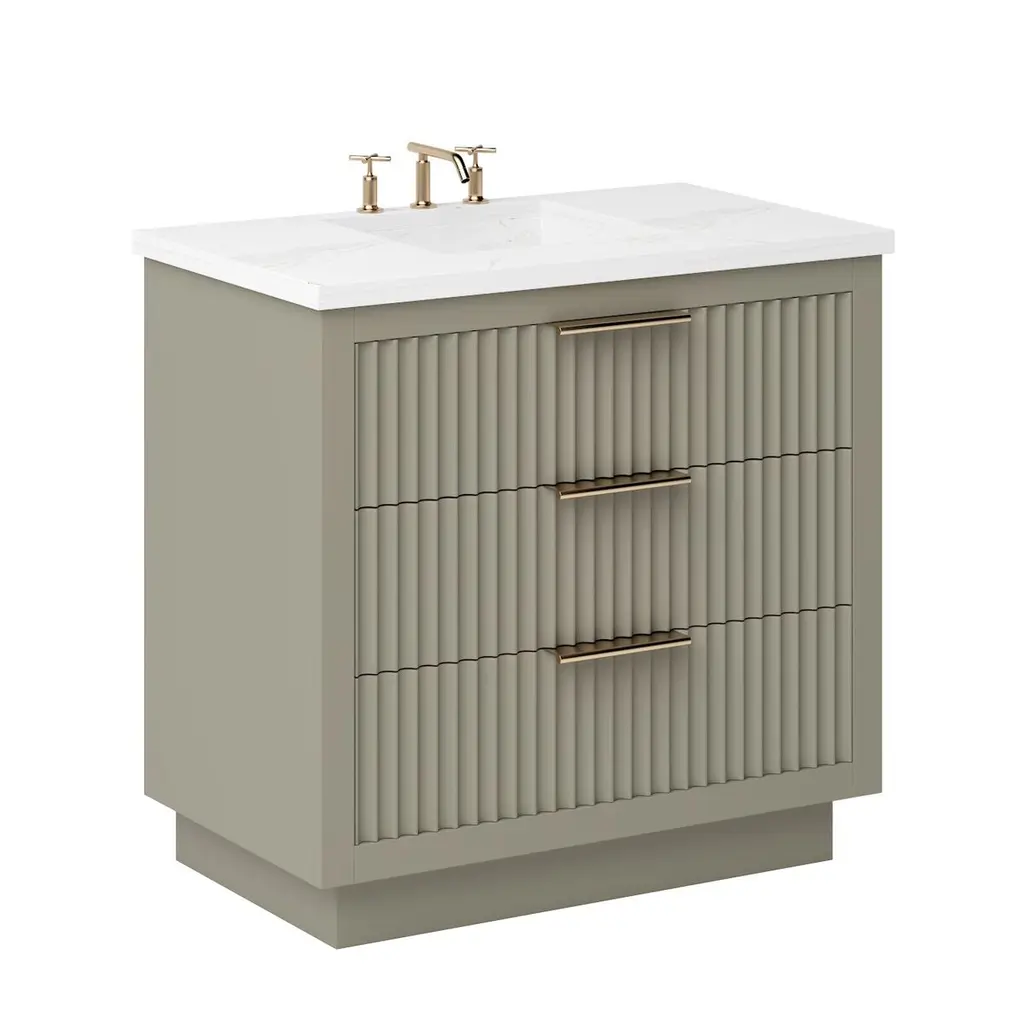 The Ashford Three-Drawer Single Bathroom Vanity is a masterpiece of contemporary design, exuding elegance with its sleek scalloped details that breathe new life into any bathroom space. This vanity is not just a piece of furniture; it's a statement of style and functionality, crafted to stand the test of time. Its freestanding design showcases a bold two-inch frame that proudly accentuates the soft-close doors and drawers, all enveloped in a luxurious satin varnish. Whether you desire a single or double configuration, the Ashford collection offers a variety of sizes to perfectly fit your space. With its versatile design, this vanity promises to be the centerpiece of your bathroom, offering both beauty and practicality in equal measure.