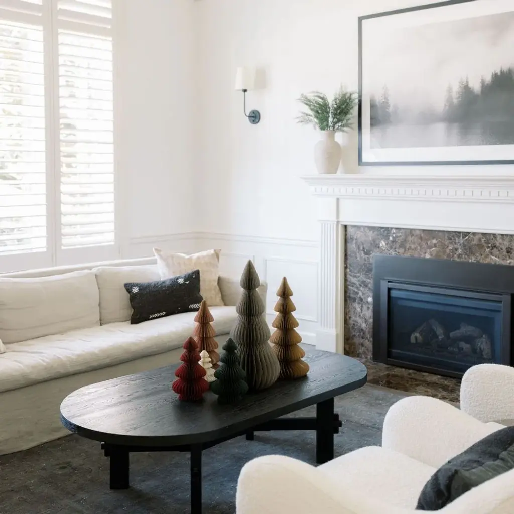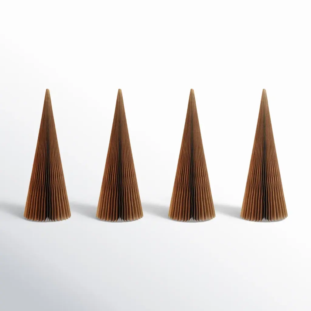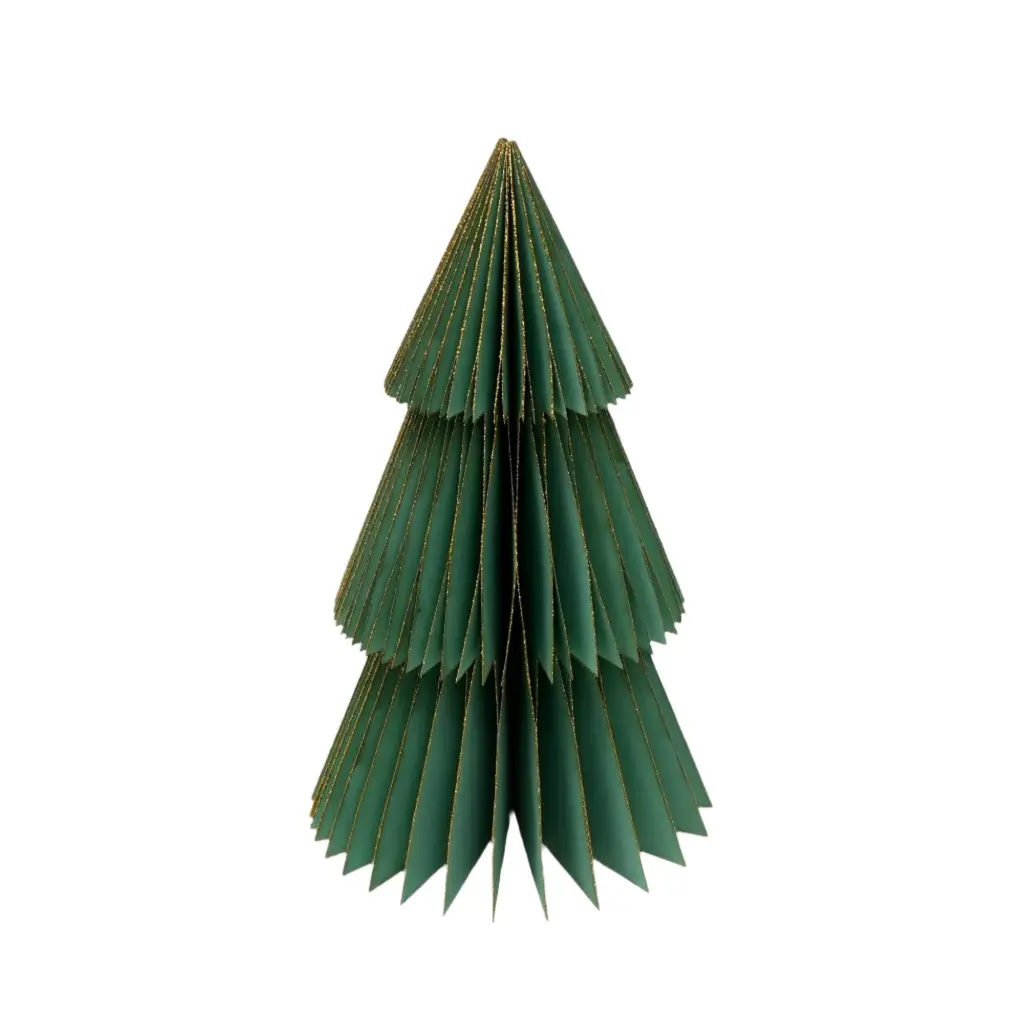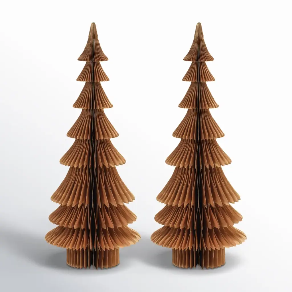 Create a festive forest in your home with the Assorted Paper Trees. Crafted from folded honeycomb paper, this set of six trees brings rich color, playful texture, and timeless holiday charm to mantels, tabletops, and shelves. Each tree easily folds open to form its sculptural shape and tucks away flat for effortless storage after the season. This collection includes a beautiful range of sizes -perfect for layering into vignettes or displaying as a statement centerpiece: 6 inches 9 inches (2 trees) 14 inches 18 inches 22 inches Featuring warm seasonal tones from deep burgundy and forest green to soft cream and muted mauve, these paper trees pair seamlessly with both modern and traditional holiday decor.