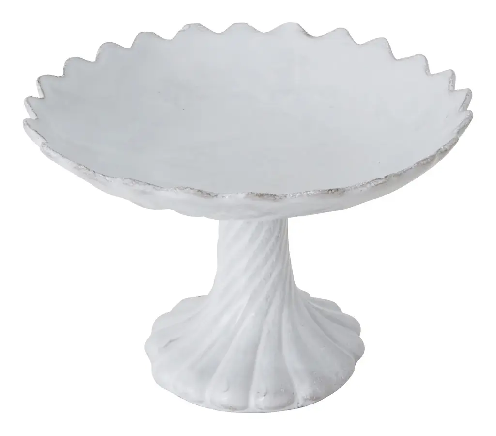 Create a pretty display out of your produce with our vintage-inspired Astier de Villatte Pim Pim Poum Stand. Modeled after elegant 19th-century pottery designs, this delicate footed dish was handcrafted in Astier’s Paris workshop using black terracotta clay and old-school techniques that have been passed down for generations. It’s coated with the brand’s signature milky white glaze, which lets hints of its natural clay color peek through for a perfectly imperfect feel. Great piled high with a colorful arrangement of fresh fruits on the kitchen counter or dining room sideboard, we also love this piece filled with a blousy bouquet of florals for an elegant centerpiece. •5.25" diameter x 3.5"H •black terracotta clay •white glaze •astier de villatte•handmade in paris •each is unique