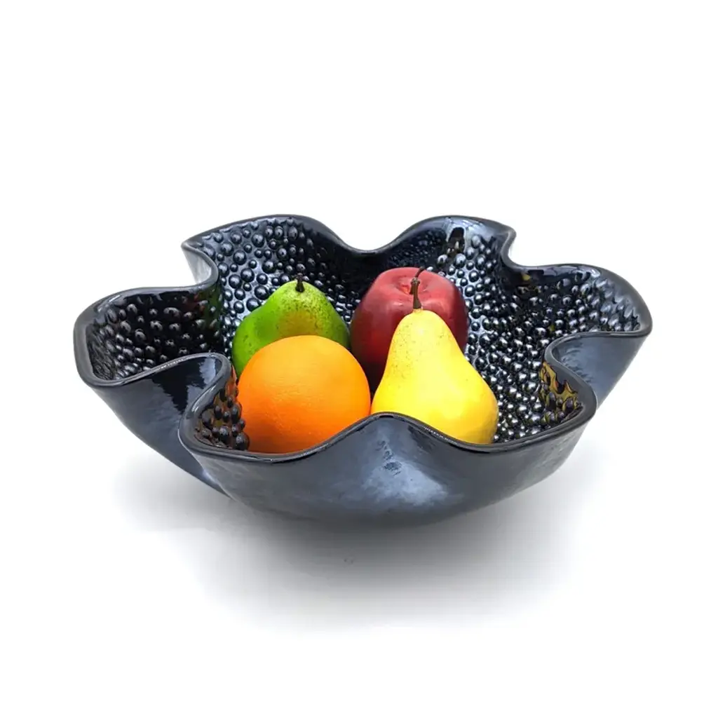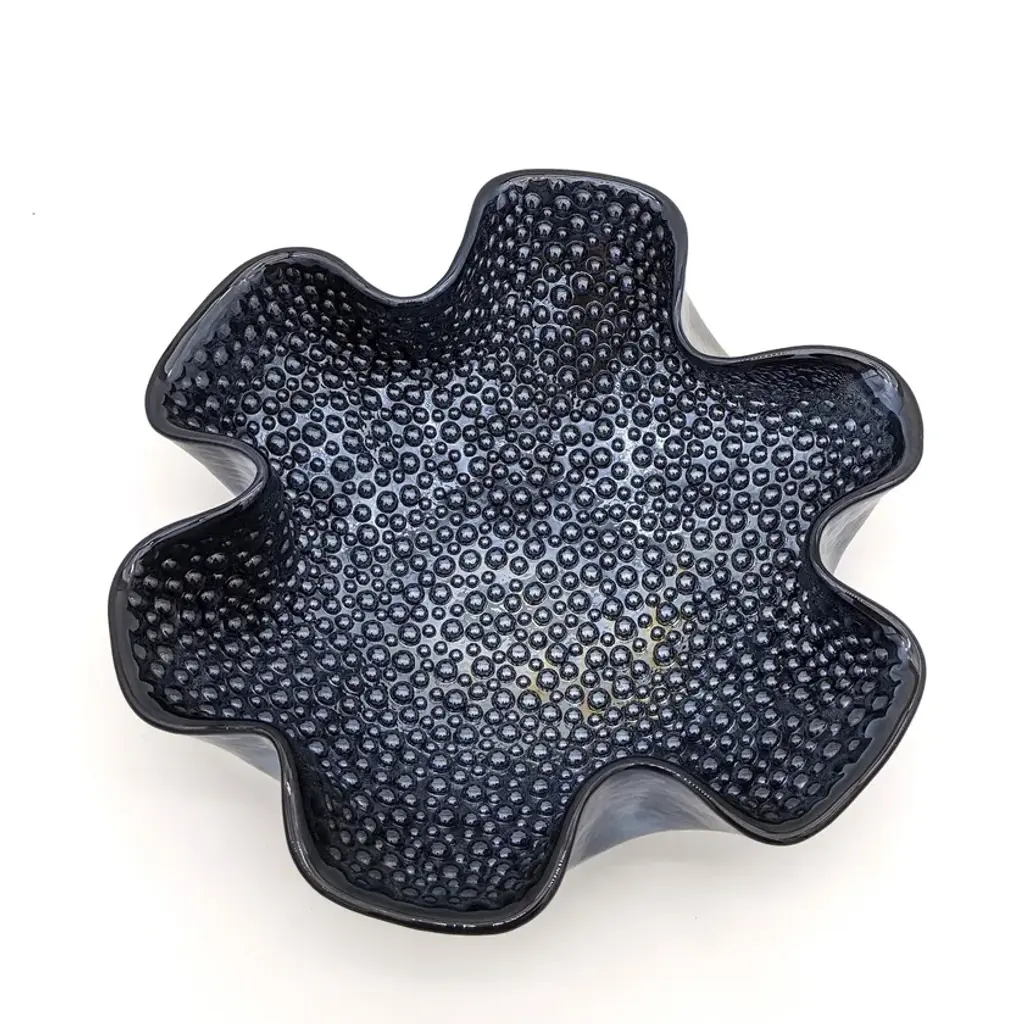 Elevate your table with BASALT, a modern black centerpiece bowl in Murano glass, featuring irregular edges and internal bubbles.Immerse yourself in the timeless elegance of YourMurano's modern design centrepieces made entirely by hand by Murano glass masters. Beyond being valuable decorative pieces, these centerpieces are true works of art embodying the mastery and tradition of Venetian glassmaking. All products are handcrafted and prime production quality. Insubstantial variations in shape, size, colour, small imperfections and/or tiny air bubbles in the glass are not considered defects; they are inevitable and are typical of manual production of the glass and characterize handcrafted production.