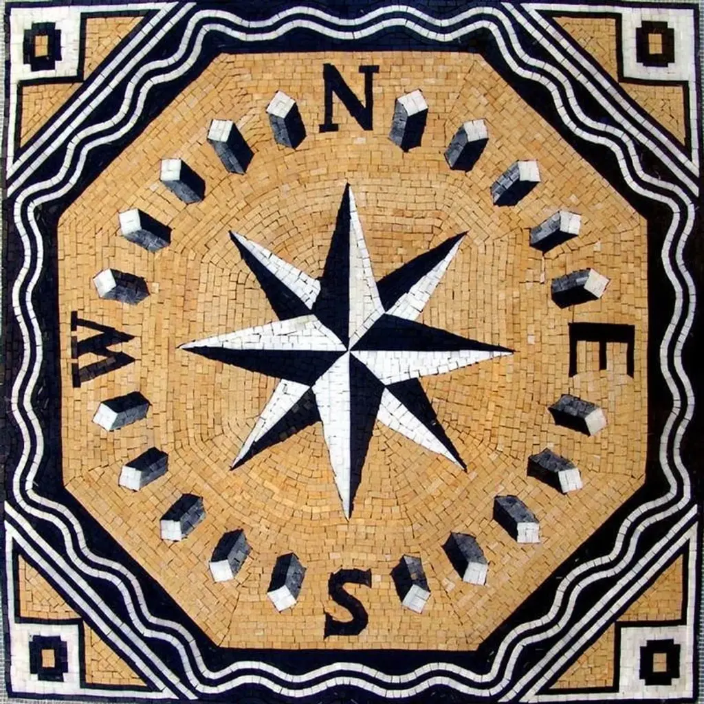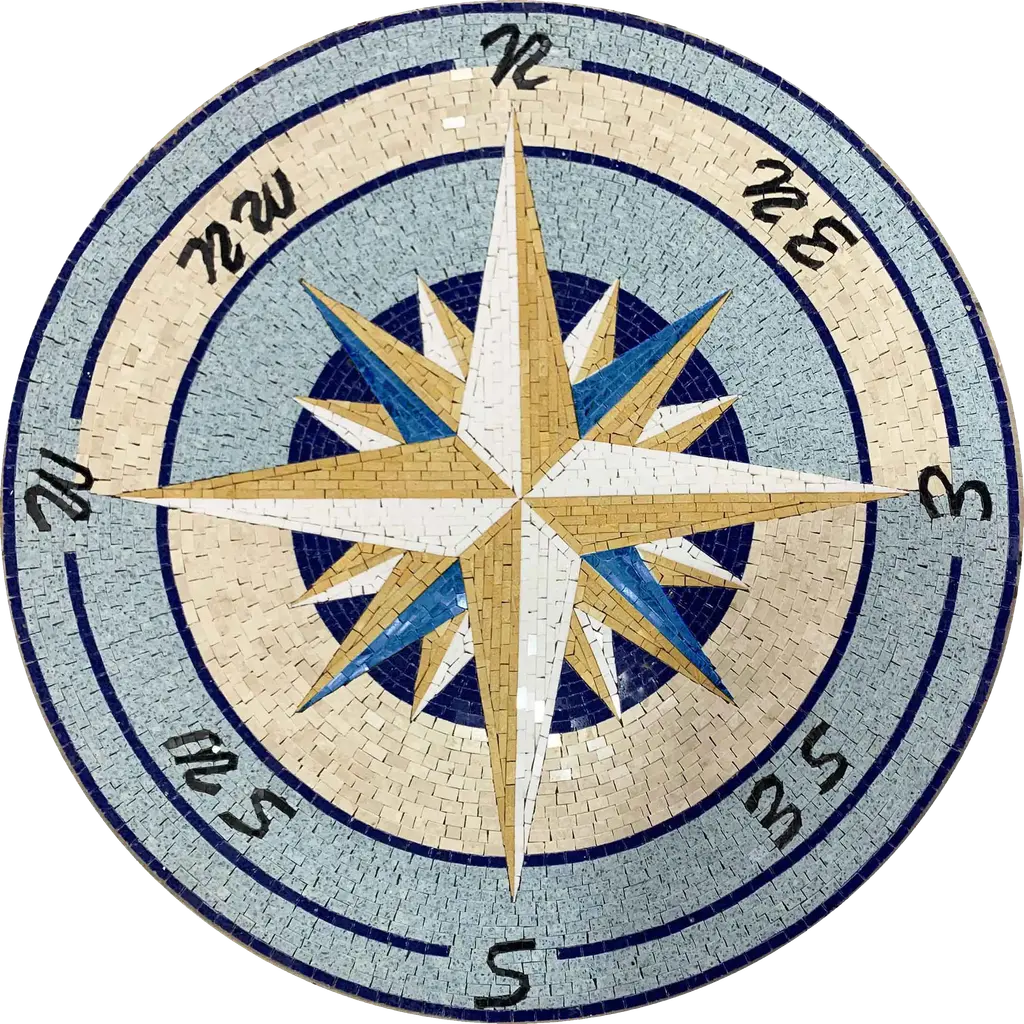 Basila - Compass Mosaic Medallion - 90cm X 90cm (36" X 36") / With Frame