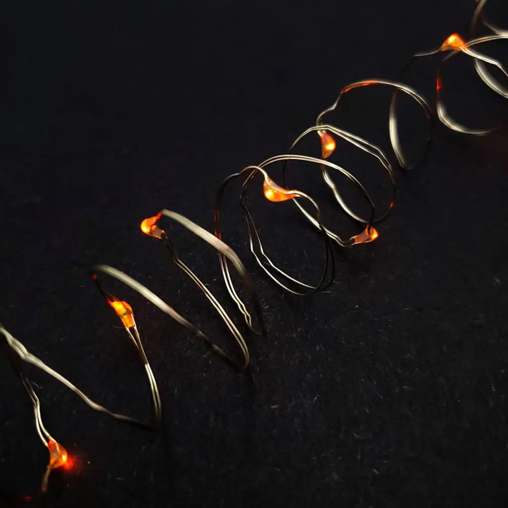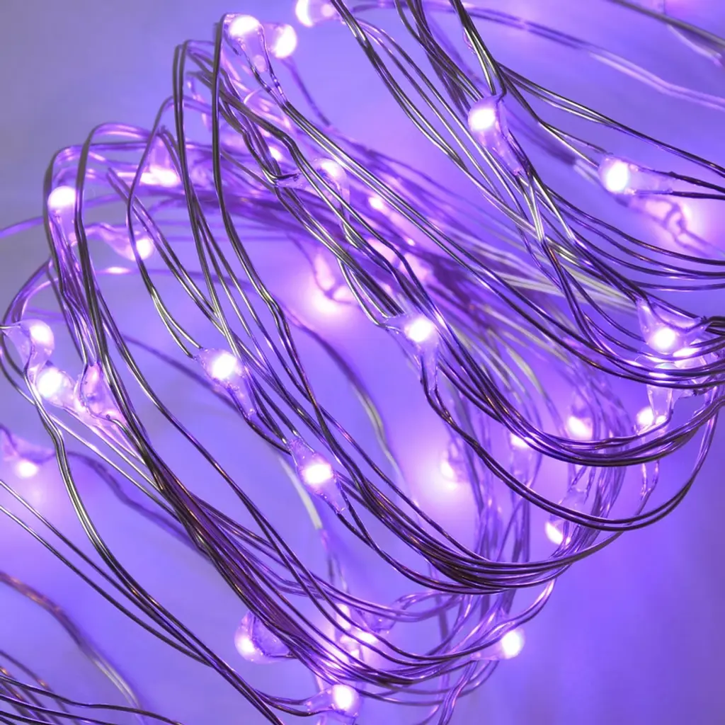 Battery operated fairy string lights will bring a spectacular ambience to a special event, party, or celebration. Create a stunning display with this set of two bendable wire cords with glowing mini LED lights. The micro lights look like a glimmering droplet of water clinging to a shiny silver wire. These weatherproof lights are perfect for illuminating a vase, floral arrangement, centerpiece, mantel, or table setting. Each string light requires 3 AA batteries (not included).