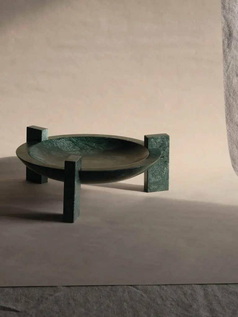 Block Stand Low Verde Guatemala Centerpiece by StudionudoUnique Piece.Dimensions: Ø 32 x H 10 cm.Materials: Verde Guatemala marble.Different materials and sizes are available. Prices may vary. Please contact us.Strict and hard blocks, that remind of mini architecture; they get struck each other giving birth to a new object. The marble, thanks to its natural beauty in color and texture, is transforming everything into a gorgeous and prestigious item.The pieces come to life from materials such as Travertine, Rosso Lepanto, Verde Guatemala, Carrara, and Nero Marquina.For both the candle holders and centerpieces, you can combine Travertine with Rosso Lepanto and Verde Guatemala, or use the five finishes individually to create the object in a single material.Studionudo was born to transform raw materials into objects of daily use, carefully saving their intrinsic qualities. Shapes and colors related to nature reflect the growing desire for open-air life, bringing us to pure and free spaces. The essential cooperation with Italian artisans creates a primordial connection between nature and design. Expert and virtuous hands confer uniqueness to every piece. Each item becomes an artistic and unrepeatable expression, creating a strong relationship between objects and people living in the same space.We strongly believe in handcraft as a unique solution to give life to eachobject, which is part of that place we love to call home. “Only the objects we love last forever”.Behind each project is a connection between the designer and the artisan, materials, and shapes. The most important aspects of this creative process are the capacity to keep the best from raw materials, the artistic interpretation of the master, and the effort to transform “project limits” into opportunities. The whole process aims to reach a relationship that gives birth to beauty through dialog and respect for both the people and the materials.