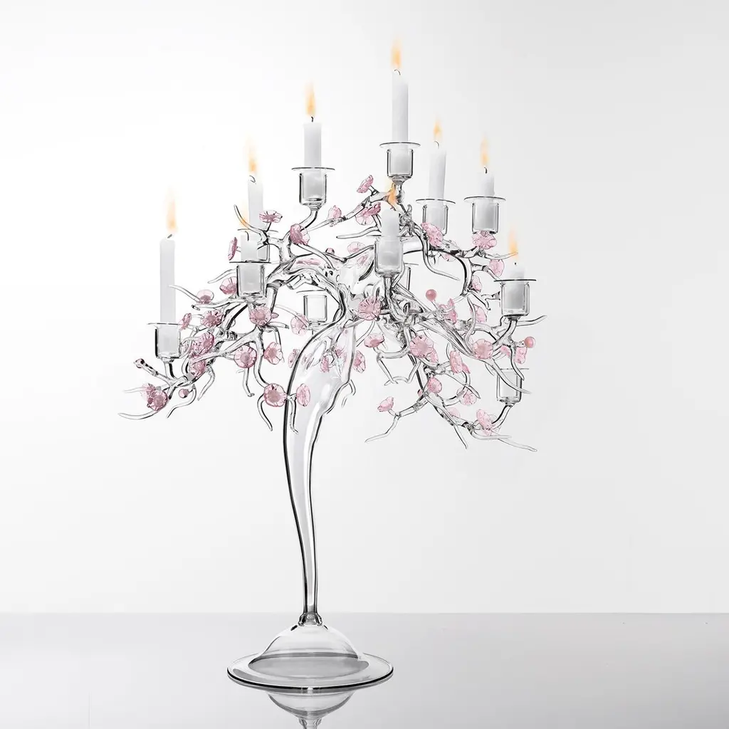 Blossom Glass With Floral Details Candelabra By Simone Crestani