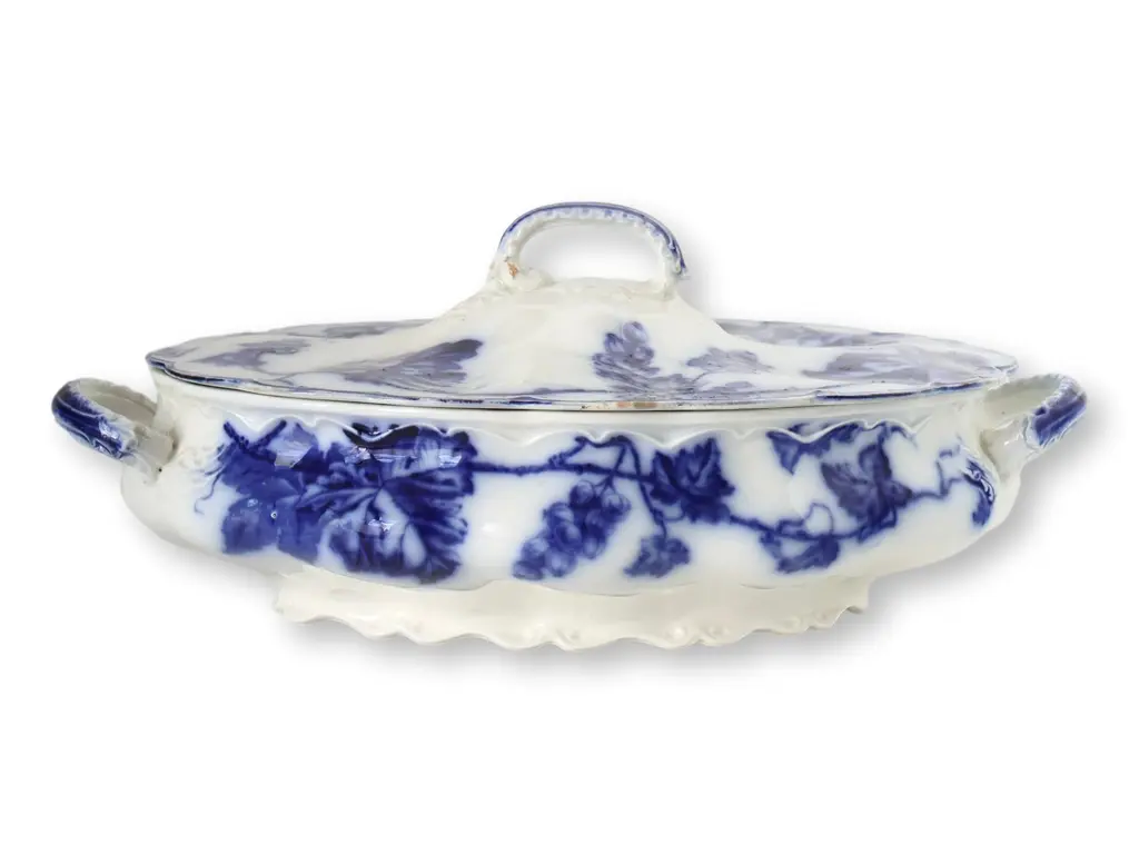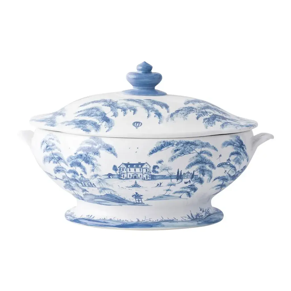 This magnificent oval tureen is functional and, when combined with the oval platter, is an elegant centerpiece. Licensed product of Historic Charleston. A favorite with brides, Mottahedeh specializes in luxurious patterns and unique, elegant shapes that are reproduced from china found in museums and historical societies. The patterns feature complex and vibrant colors, and hand-painted gold decoration. The pieces are surprisingly fresh and timely, and look wonderful in both contemporary and traditional dining rooms.