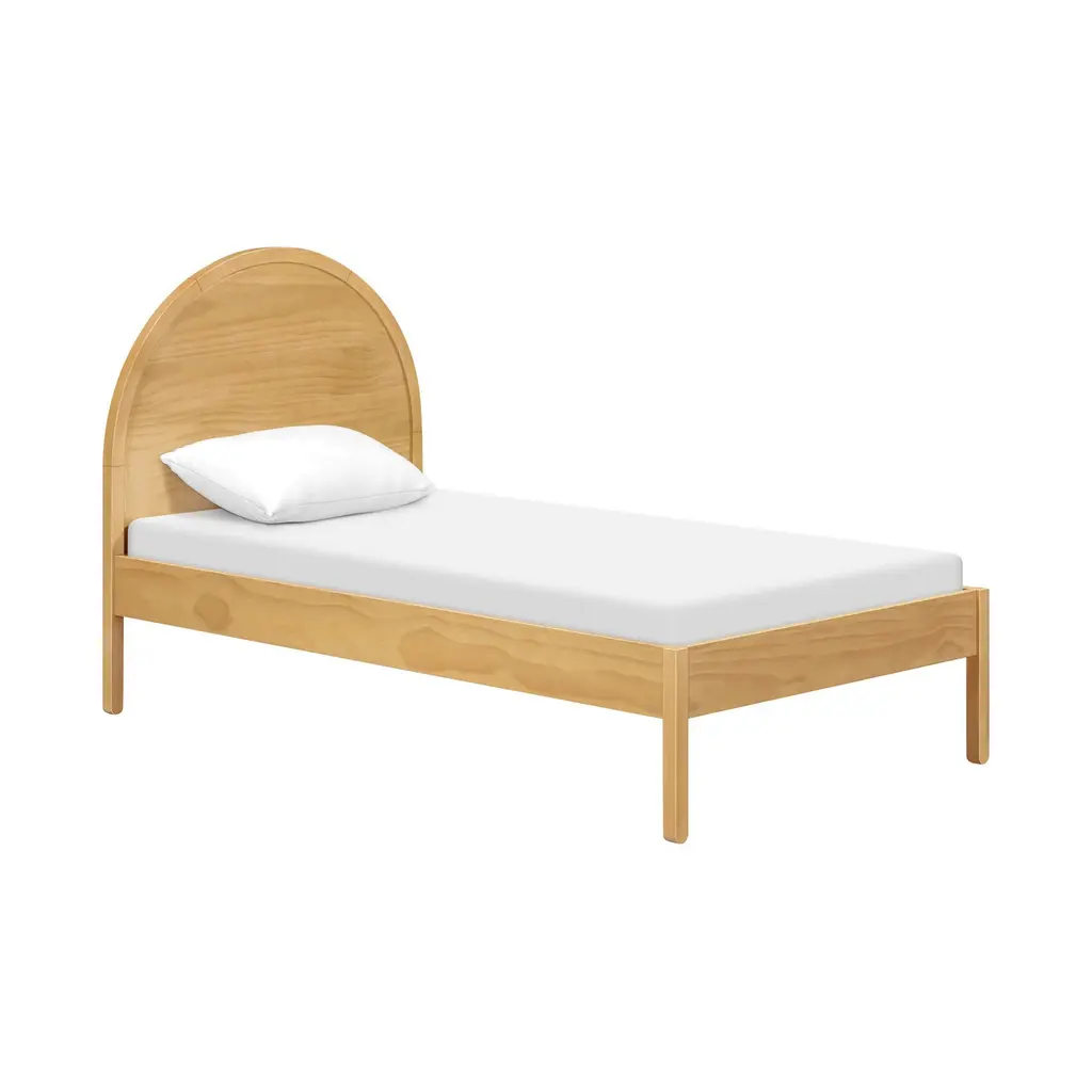 With its warm wood tones and a relaxed, boho-inspired aesthetic, the Bondi Bed from Babyletto is a stylish centerpiece for your kiddo's room. This charming bed features a sleek silhouette with a softly arched headboard for a warm, natural feel. Consciously crafted from sustainably sourced poplar wood with a non-toxic finish, it's GREENGUARD GOLD Certified to support cleaner indoor air. A fusion of thoughtful design and uncompromising safety, it’s a beautiful foundation for a healthy bedroom. Highlights: