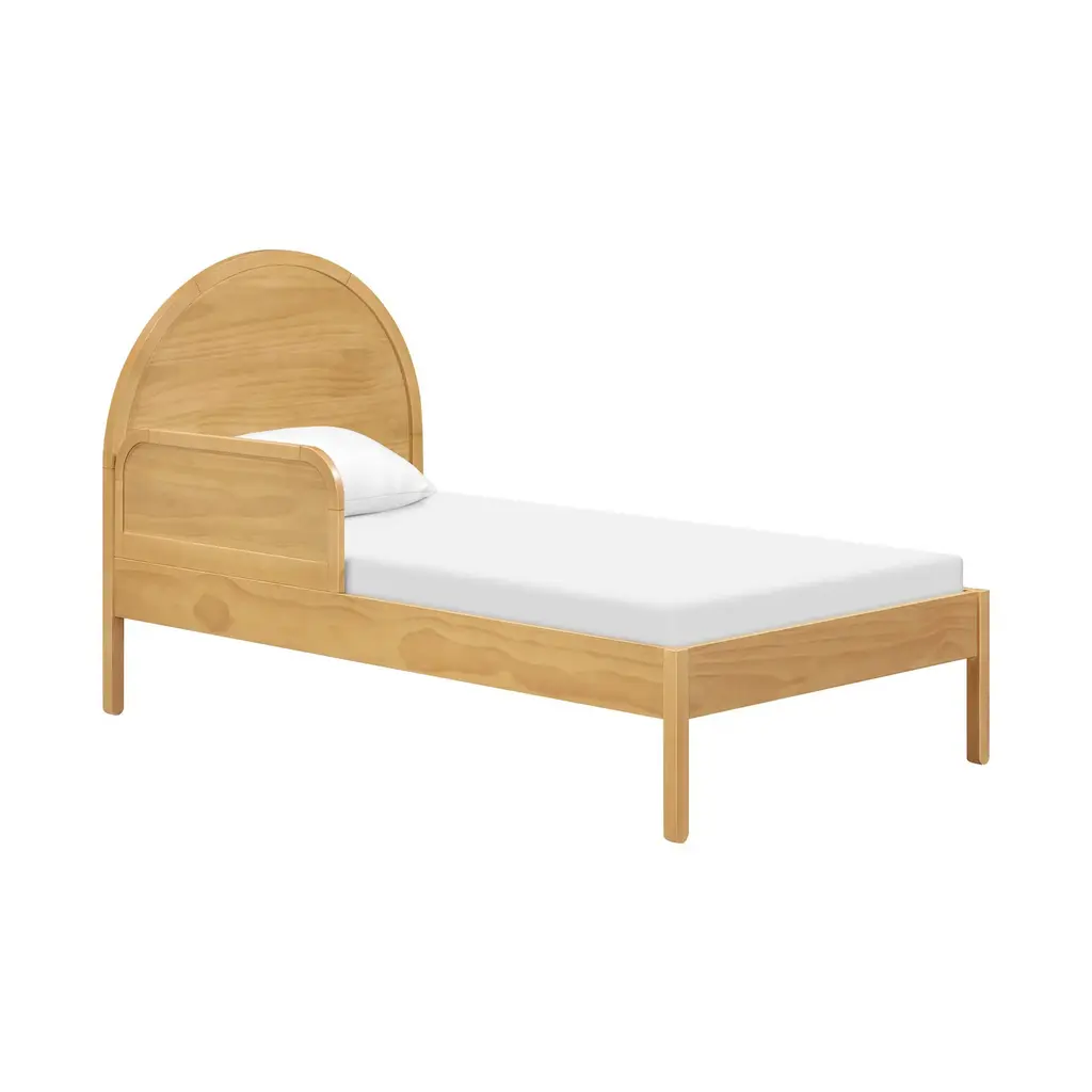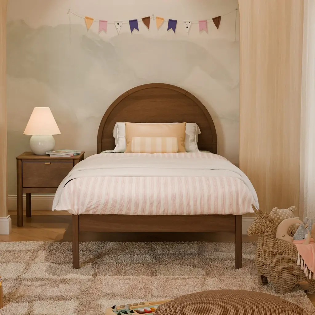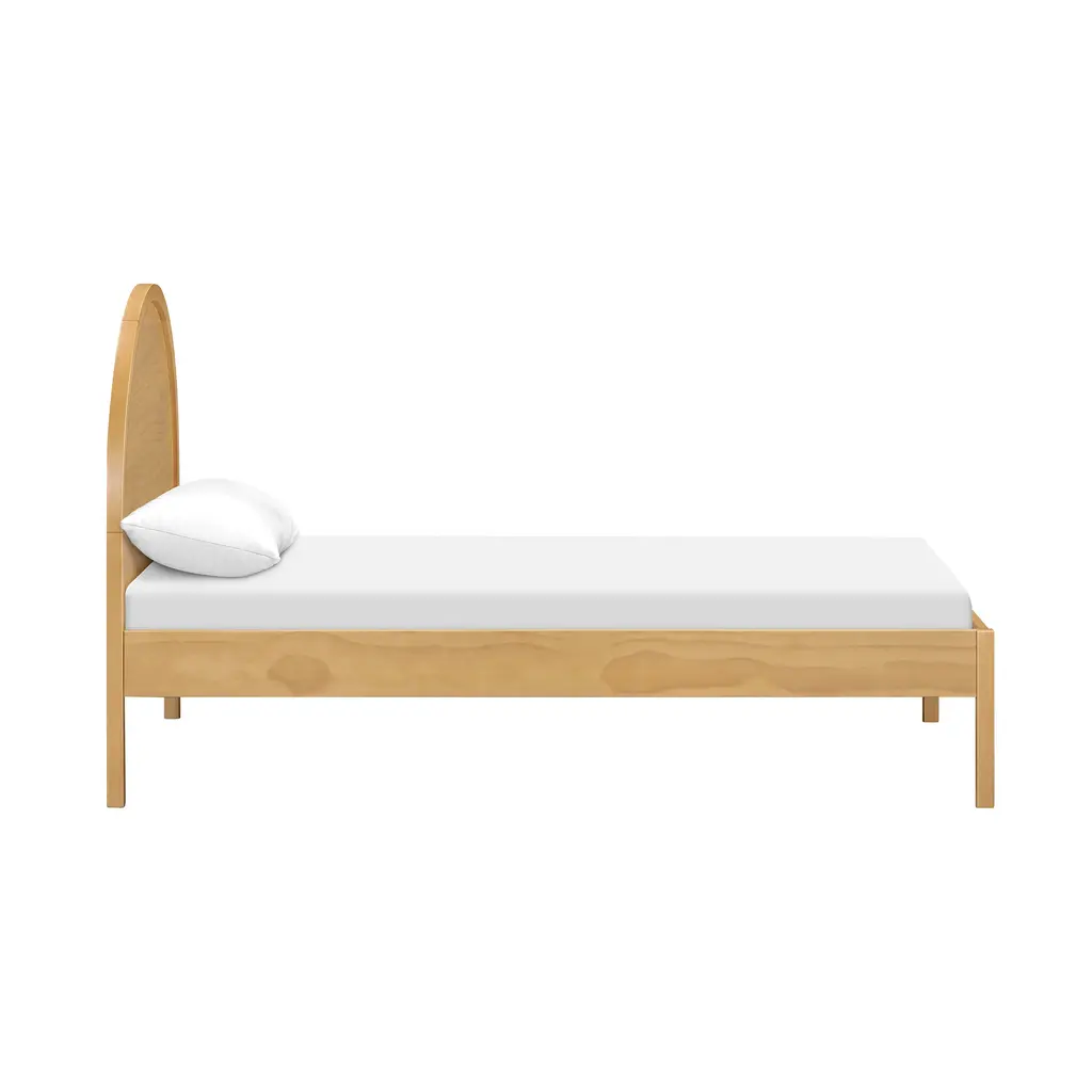 With its warm wood tones and a relaxed, boho-inspired aesthetic, the Bondi Bed from Babyletto is a stylish centerpiece for your kiddo's room. This charming bed features a sleek silhouette with a softly arched headboard for a warm, natural feel. Consciously crafted from sustainably sourced poplar wood with a non-toxic finish, it's GREENGUARD GOLD Certified to support cleaner indoor air. A fusion of thoughtful design and uncompromising safety, it’s a beautiful foundation for a healthy bedroom. Highlights: