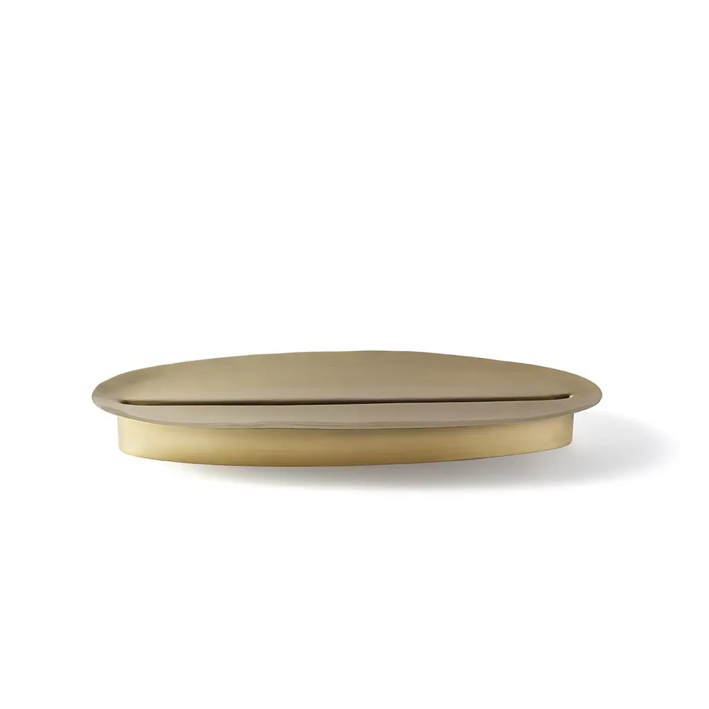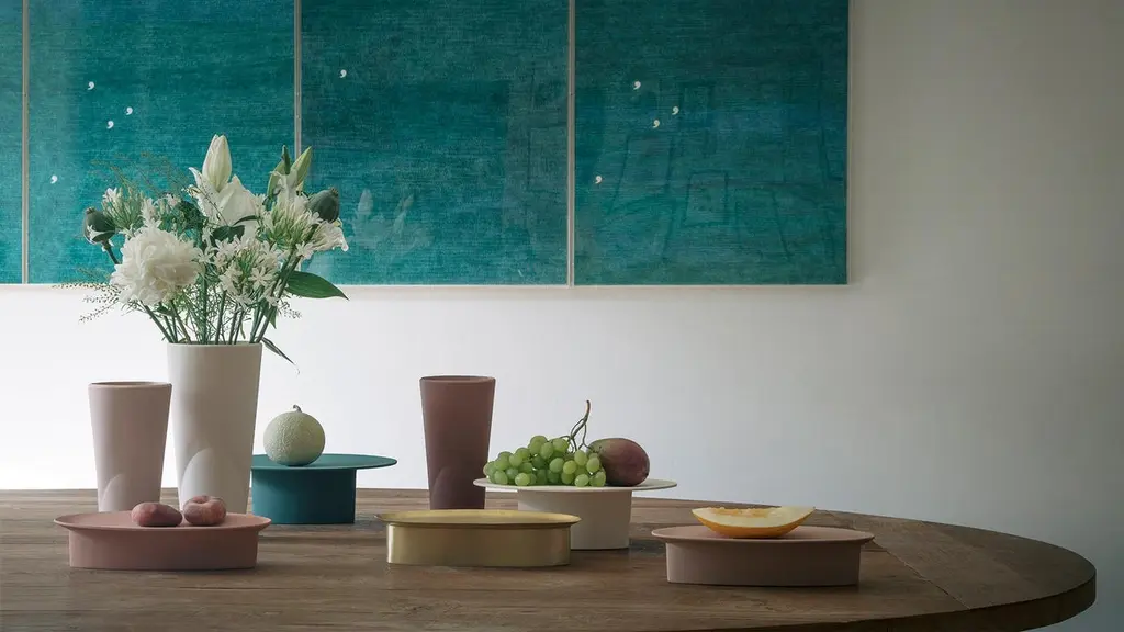 Adspera is a centerpiece in brass designed by Chiara Andreatti for Paola C. and it is part of the collection Coquille, a collection composed of cake stands, centerpieces, fruit bowls and vases, inspired by natural shapes that recall stylized shells. The element that unites all the pieces is a ribbing that, like an engraving in pure shapes, creates dynamic surfaces and folds of minimalist tensions. Rose-earth/terracotta and carmine colors alternate with silver and gold metallic elements, making Coquille a heterogeneous and unique service.