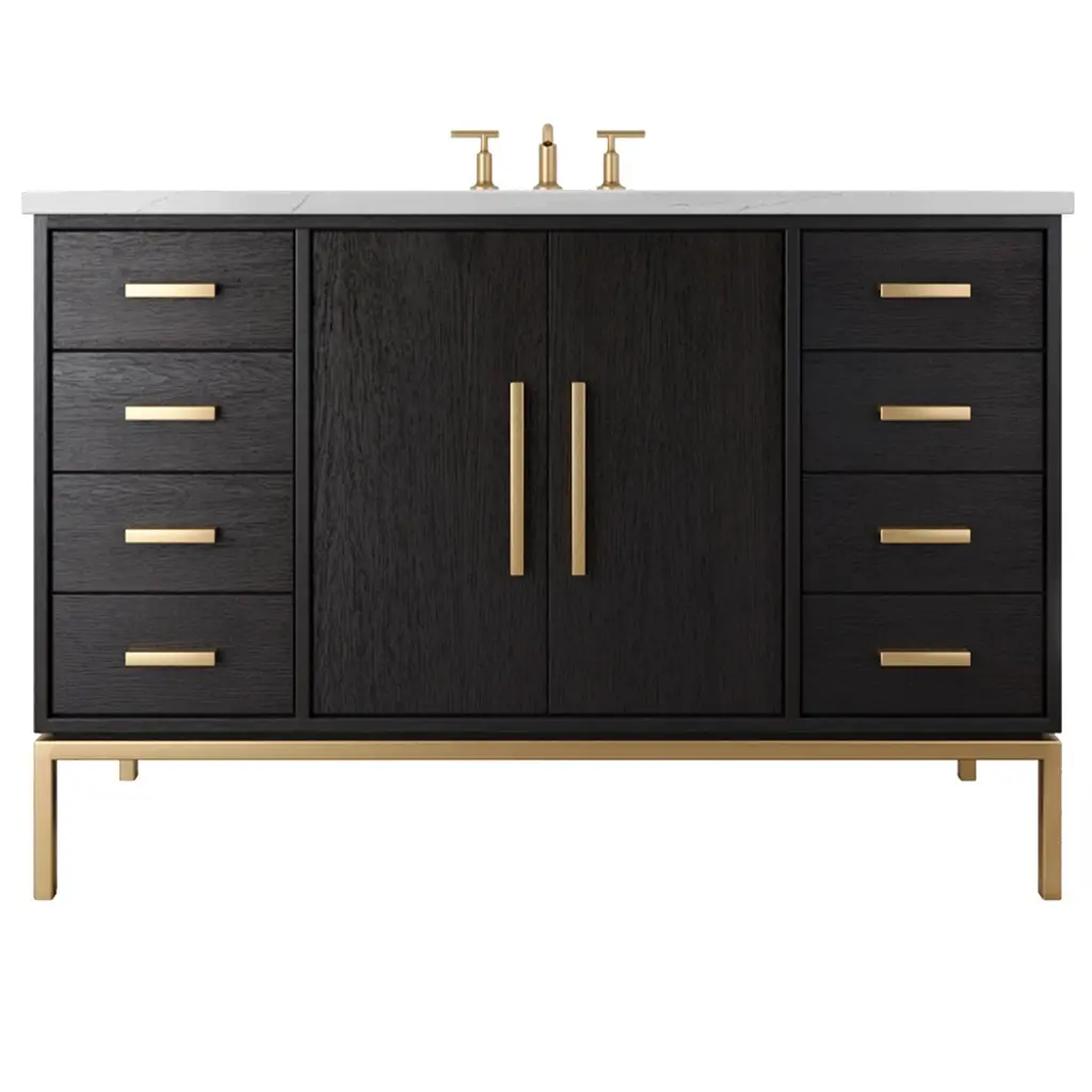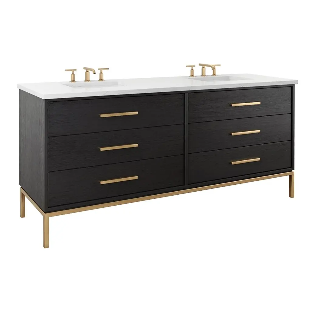 Introducing the Briar White Oak Double Drawer Bathroom Vanity, a masterpiece of Neo Modern design that promises to transform your bathroom into a sanctuary of elegance and functionality. Crafted with precision, this exquisite vanity is a testament to the beauty of oak wood, featuring a rift cut veneer that exudes sophistication. The design is not only visually stunning but also highly practical, with four functional drawers ingeniously crafted to clear plumbing, ensuring a seamless and clutter-free experience. The metal base adds a touch of contemporary flair, harmonizing beautifully with the natural allure of the wood. Available in various sizes and finish combinations, the Briar White Oak Double Drawer Bathroom Vanity is a versatile addition to any bathroom, offering both style and substance. Let this vanity be the centerpiece of your bathroom, where modern design meets timeless elegance, creating a space that is both inviting and inspiring.