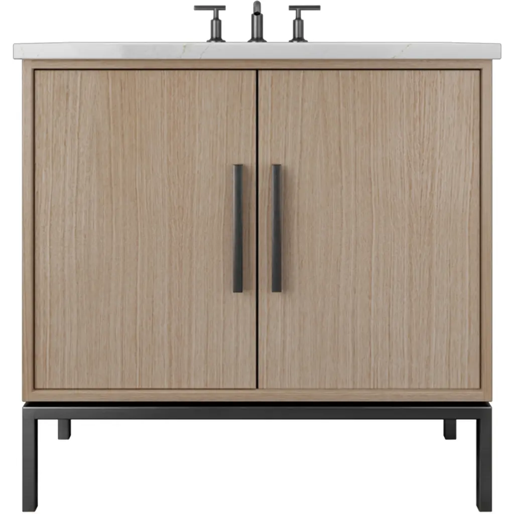 Introducing the Briar White Oak Single Bathroom Vanity, a masterpiece of Neo Modern design that promises to transform your bathroom into a sanctuary of elegance and style. This exquisite vanity is crafted from the finest oak wood, showcasing a rift cut white oak veneer that exudes sophistication and timeless beauty. With its sleek metal base, this vanity stands as a testament to the harmonious blend of natural materials and modern design. The Briar White Oak Single Bathroom Vanity features two elegantly designed doors, offering ample storage space while maintaining a clean and uncluttered look. Available in a variety of sizes, this vanity can seamlessly fit into any bathroom space, providing both functionality and a touch of luxury. The multiple wood and metal finish combinations allow you to customize the vanity to perfectly match your personal style and the aesthetic of your home. Let the Briar White Oak Single Bathroom Vanity be the centerpiece of your bathroom, where every detail speaks of quality and refined taste. Embrace the allure of modern elegance with this stunning piece that promises to elevate your daily routine into a moment of indulgence.