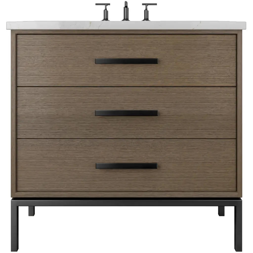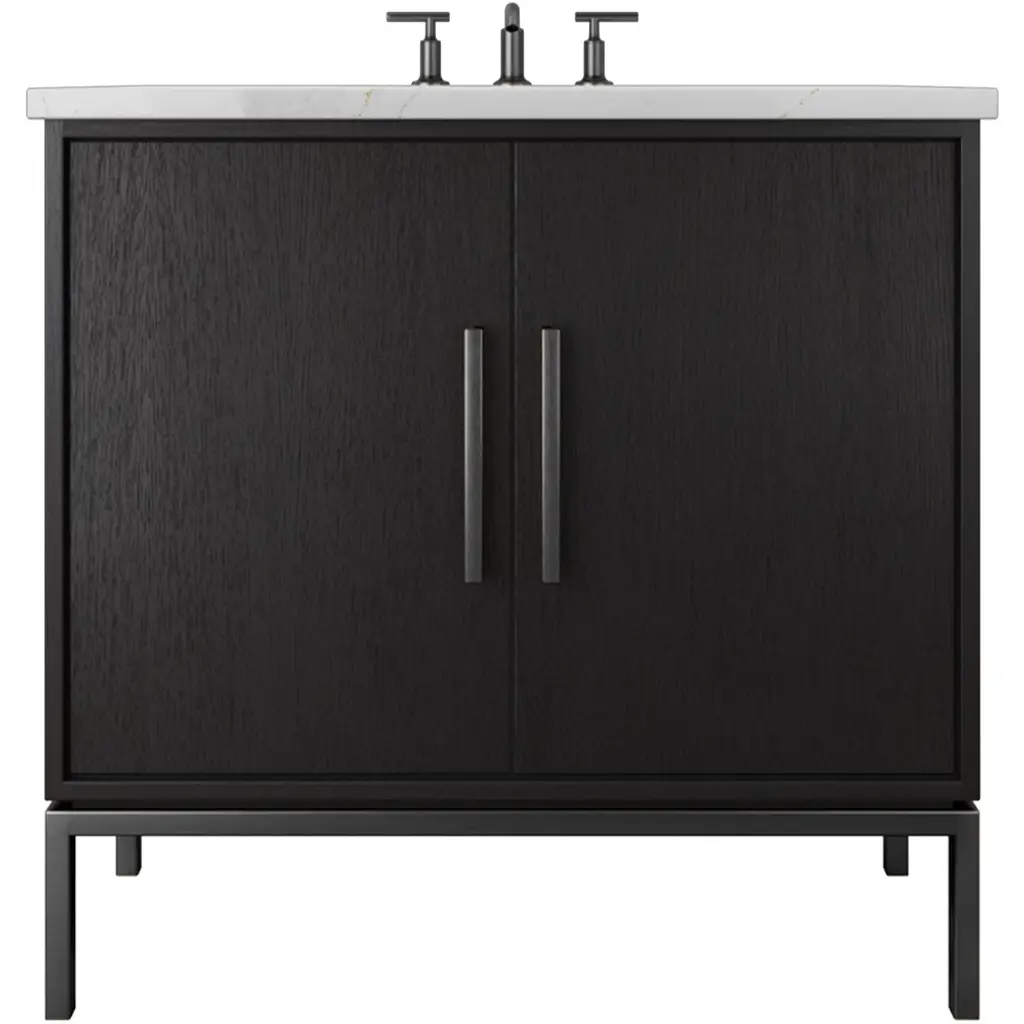 Introducing the Briar White Oak Single Bathroom Vanity, a masterpiece of Neo Modern design that promises to transform your bathroom into a sanctuary of elegance and style. This exquisite vanity is crafted from the finest oak wood, showcasing a rift cut white oak veneer that exudes sophistication and timeless beauty. With its sleek metal base, this vanity stands as a testament to the harmonious blend of natural materials and modern design. The Briar White Oak Single Bathroom Vanity features two elegantly designed doors, offering ample storage space while maintaining a clean and uncluttered look. Available in a variety of sizes, this vanity can seamlessly fit into any bathroom space, providing both functionality and a touch of luxury. The multiple wood and metal finish combinations allow you to customize the vanity to perfectly match your personal style and the aesthetic of your home. Let the Briar White Oak Single Bathroom Vanity be the centerpiece of your bathroom, where every detail speaks of quality and refined taste. Embrace the allure of modern elegance with this stunning piece that promises to elevate your daily routine into a moment of indulgence.