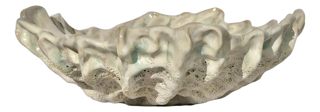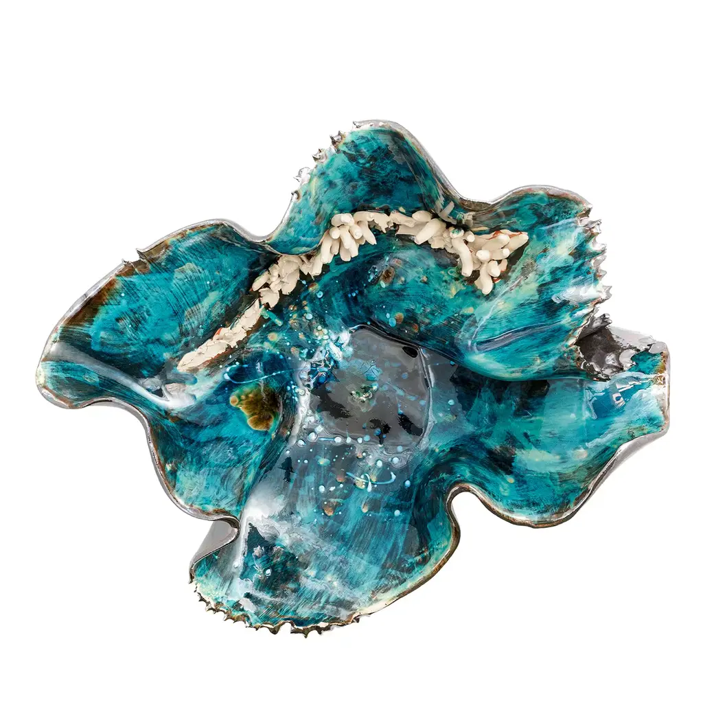 A sublime object of functional decor to enhance the sophisticated allure of a contemporary dining table, this gorgeous centerpiece from the Mare Collection is a singular design by artist and ceramist Giuliana Collu. Decorated with richly detailed motifs of marine inspiration, it is handcrafted of ceramic and enameled with handmade and customized turquoise ceramics glaze, with details rendered in matte white.