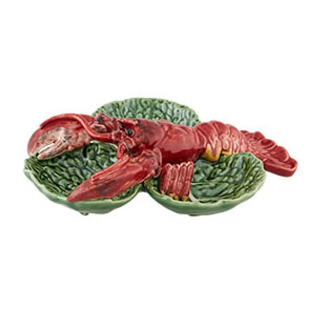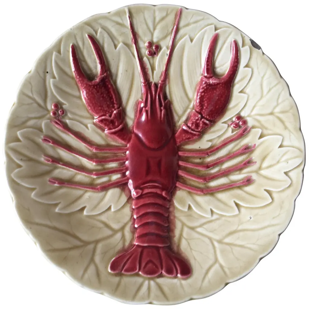 A meticulously rendered lobster serves as a handle for the lid of this cabbage leaf tureen. When it's not serving soup, the hand-painted earthenware piece makes a dazzling centerpiece.