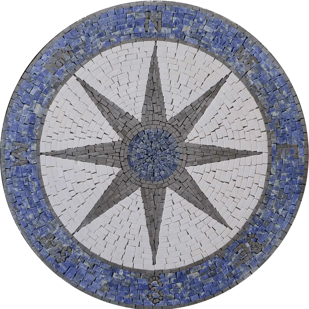 Discover the captivating beauty of the "Caeruleum - Compass Mosaic Design," a unique piece that combines artistry with functionality. This exquisite mosaic features a stunning array of blue shades that evoke the serenity of the ocean, complemented by definitive compass arms that symbolize guidance and adventure. Handcrafted from natural marble mosaic stones, each "Caeruleum - Compass Mosaic Design" is truly one of a kind, reflecting the skilled craftsmanship that goes into its creation. This mosaic is not only a testament to artistic excellence but also a durable addition to your home decor, designed to withstand the test of time. Perfect for sailing enthusiasts and ocean lovers alike, the "Caeruleum - Compass Mosaic Design" serves as an eye-catching centerpiece for any room, whether displayed on a tabletop, in a living area, or as part of a nautical-themed room. Its intricate design invites conversation and brings a touch of the sea into your home. Transform your space with the elegance and charm of the "Caeruleum - Compass Mosaic Design." This decorative piece is more than just a mosaic; it’s an expression of your love for the ocean and your appreciation for fine craftsmanship. Elevate your decor and let this unique mosaic guide you on a journey of style and sophistication.
