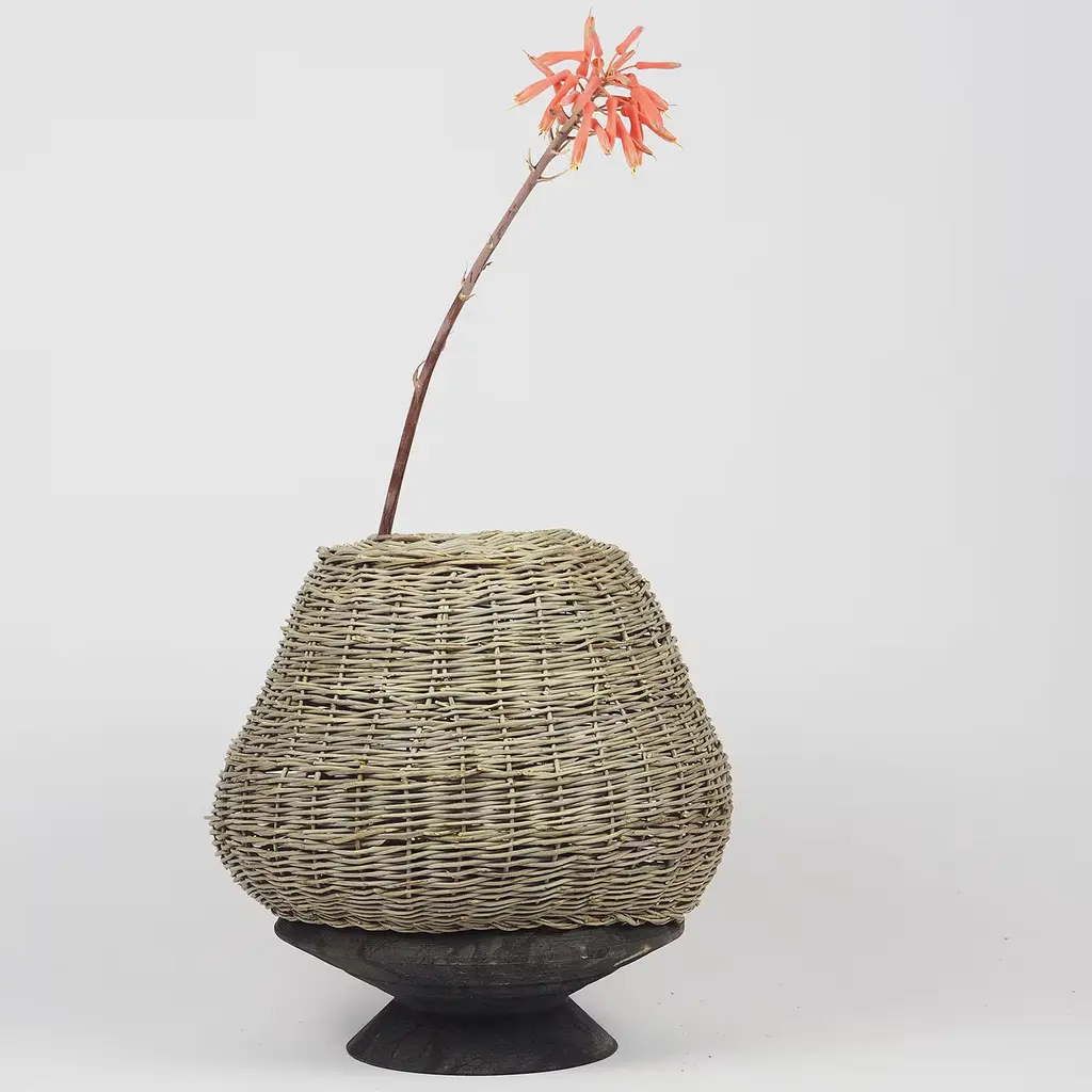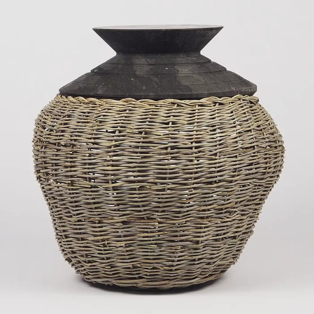 A collection of centerpieces and containers in Jerissa stone and intertwined olive branches that reflect the theme of the traditional basket, reinterpreted; recovered from a distant past, they are reviewed in a contemporary key. The stone bases are machined with numerical control, leaving the processing in an intermediate phase, the braided component is, on the contrary, worked by hand with great patience and attention.