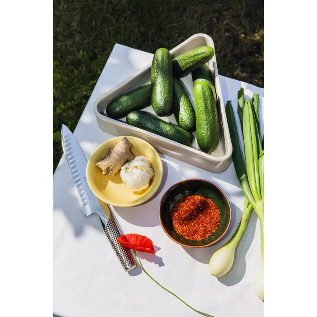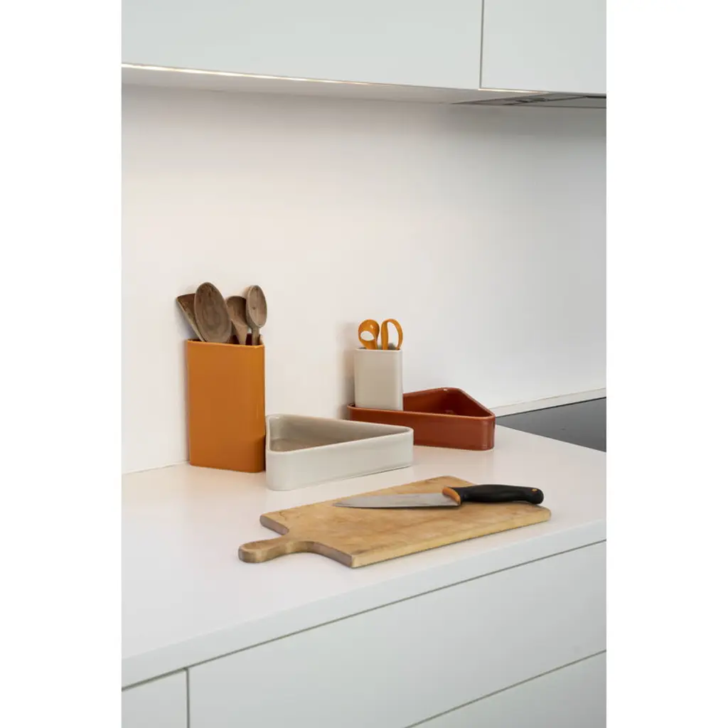 Raawii's Canvas centerpiece arouses curiosity with its exciting shape: the triangular centerpiece encourages different interpretations of how it can be used. The Canvas centerpiece does not have a single predefined purpose, but rather allows room for experimentation and creativity. You can fill the Canvas centerpiece with sweets and other treats, but it can also be used to store jewelry or other small items in the home. It can also be used as a plate to add a touch of eye-catching style to dinner party settings. With its playful shape and bold colors, the Canvas collection can be mixed and matched in endless ways to create surprising compositions. The only limit is your creativity!