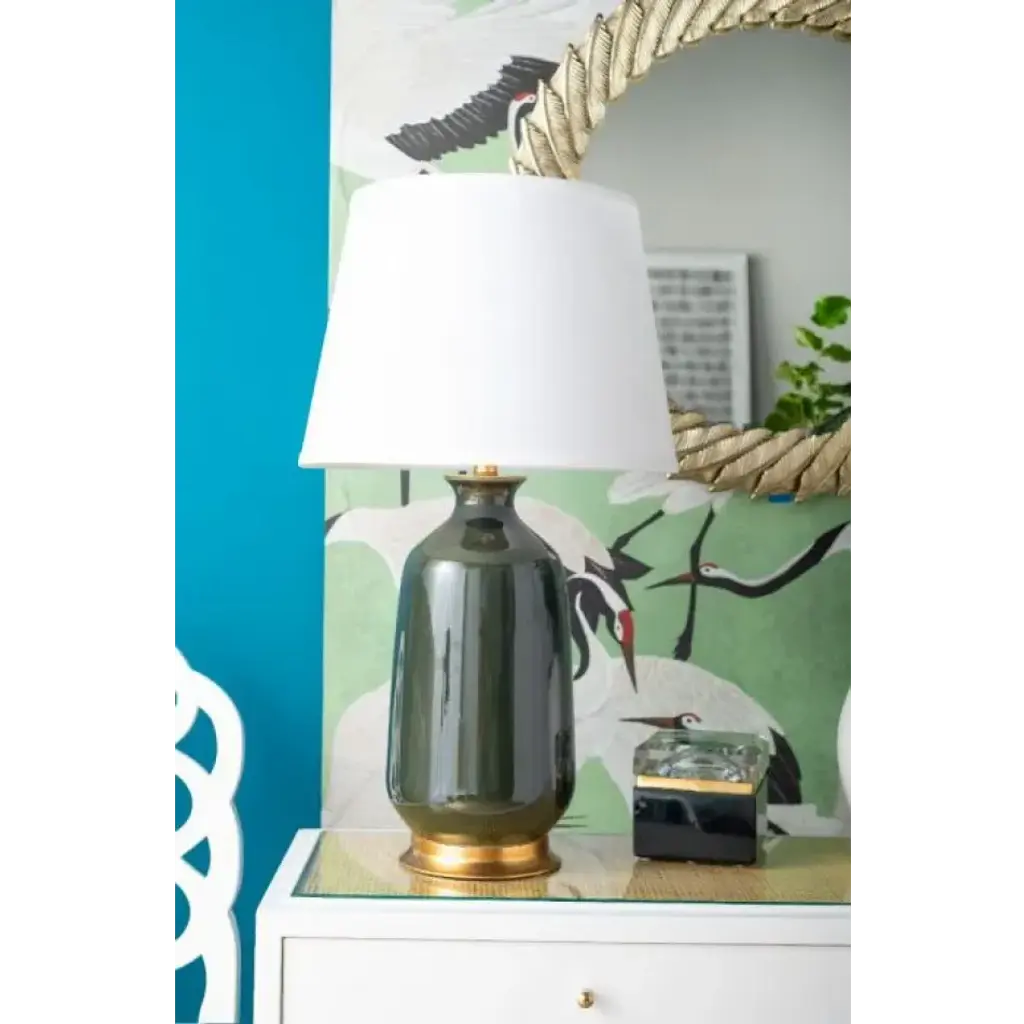 The rich glazed color of our Carolyn lamps evokes the warmth of an Indian-summer day in late autumn while its hand-leafed base and finial impart luxury and glamour. Whether you choose to place the Carolyn in a traditional living room or a modern bedroom, its glowing porcelain sheen and rounded curves make it the stunning centerpiece of the room.