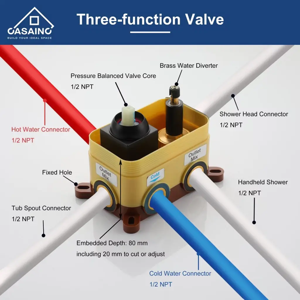 Redefine your shower experience with the CASAINC 12" Ceiling-Mounted Square Shower System, designed to bring spa-level relaxation to the comfort of your home. Featuring a luxurious overhead rainfall spray, a multifunction handheld shower, and a 180° swivel tub spout, this all-in-one system provides unmatched versatility and comfort. Engineered for both performance and sustainability, this system includes a CUPC-certified pressure balance valve for temperature stability and an eco-conscious CEC certification to reduce water and energy consumption. Air-infusion technology enhances water flow while maintaining efficiency, offering a refreshing and enveloping spray that relaxes the body and mind. With clean, modern lines and premium construction, it’s the perfect centerpiece for any upscale bathroom remodel or new build.