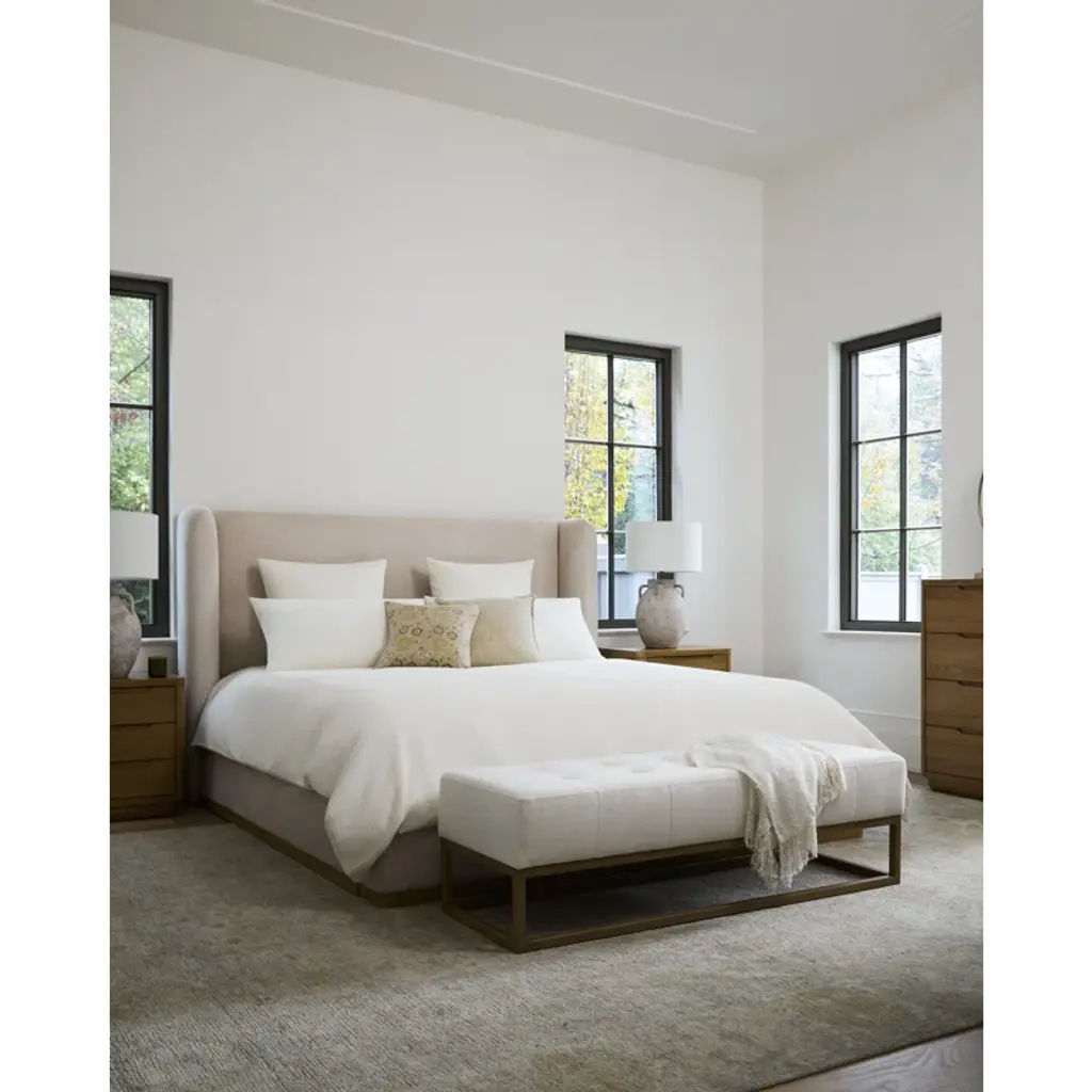 Welcome to the world of comfort and elegance with the Covina Upholstered Bed. This beautiful bed is designed to enhance any space, providing a stunning centerpiece that combines style and function. The bed is constructed with a robust rubber wood base for stability, while its upholstered finish is a delightful blend of polyester and nylon, ensuring both durability and a soft touch. The bed's filling consists of 75% polyester wrapped foam and 25% polyester/polyfill, offering incredible comfort for an undisturbed night's sleep. Manufactured in Vietnam, this piece brings together global influences for a truly unique look. Careful maintenance is as simple as a spot clean with a dry cloth, making it an easy addition to your busy lifestyle. Transform your bedroom into an oasis of tranquility with the Covina Upholstered Bed!
