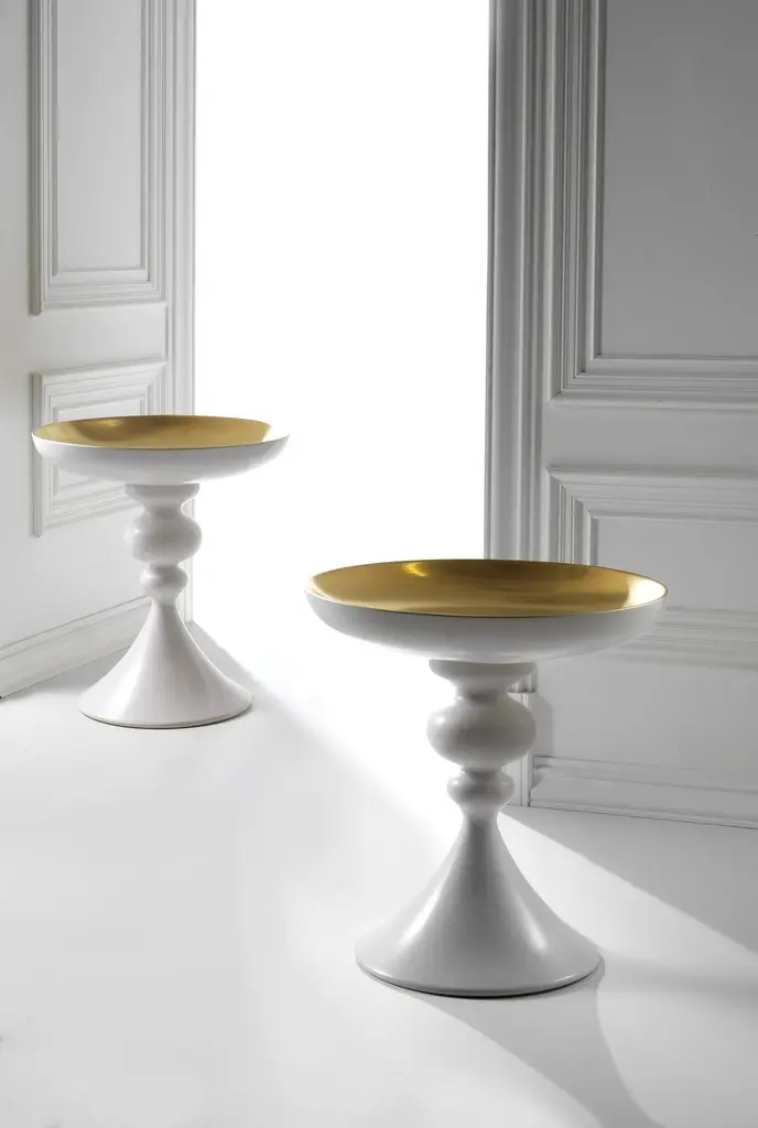 Ceramic Centerpiece "Artu" White Matt With 24kt Gold Matt Inside, By Gabriella B