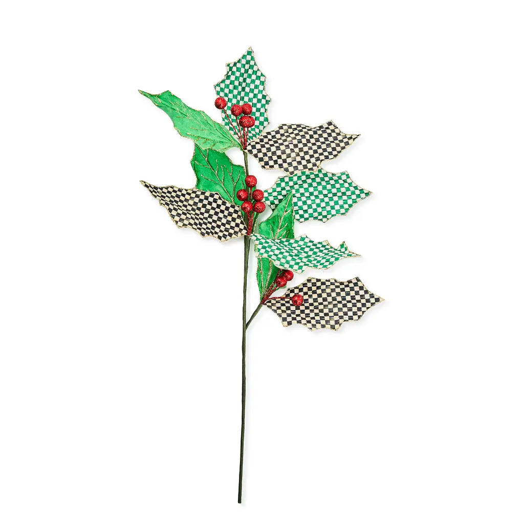 Put your spin on holiday decor with the wired Check It Out Poinsettia Stem. It features a cluster of red berries, plus poinsettia leaves in green, red, and our Courtly Check pattern, edged with iridescent glitter. It's easily shapeable, so add several to a vase to create a beautiful centerpiece or tuck a few into your Christmas tree for added dimension.