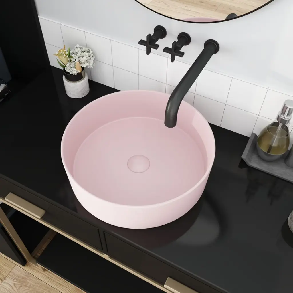 Chicfurnit Bathroom Sink Vessel Sink Stylish Ceramic Above Counter Modern For Bathroom, Pink, 15.7"*15.7"*4.7"