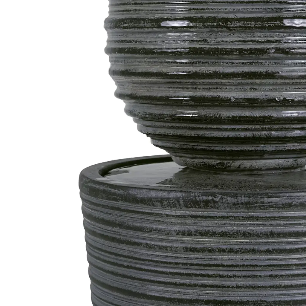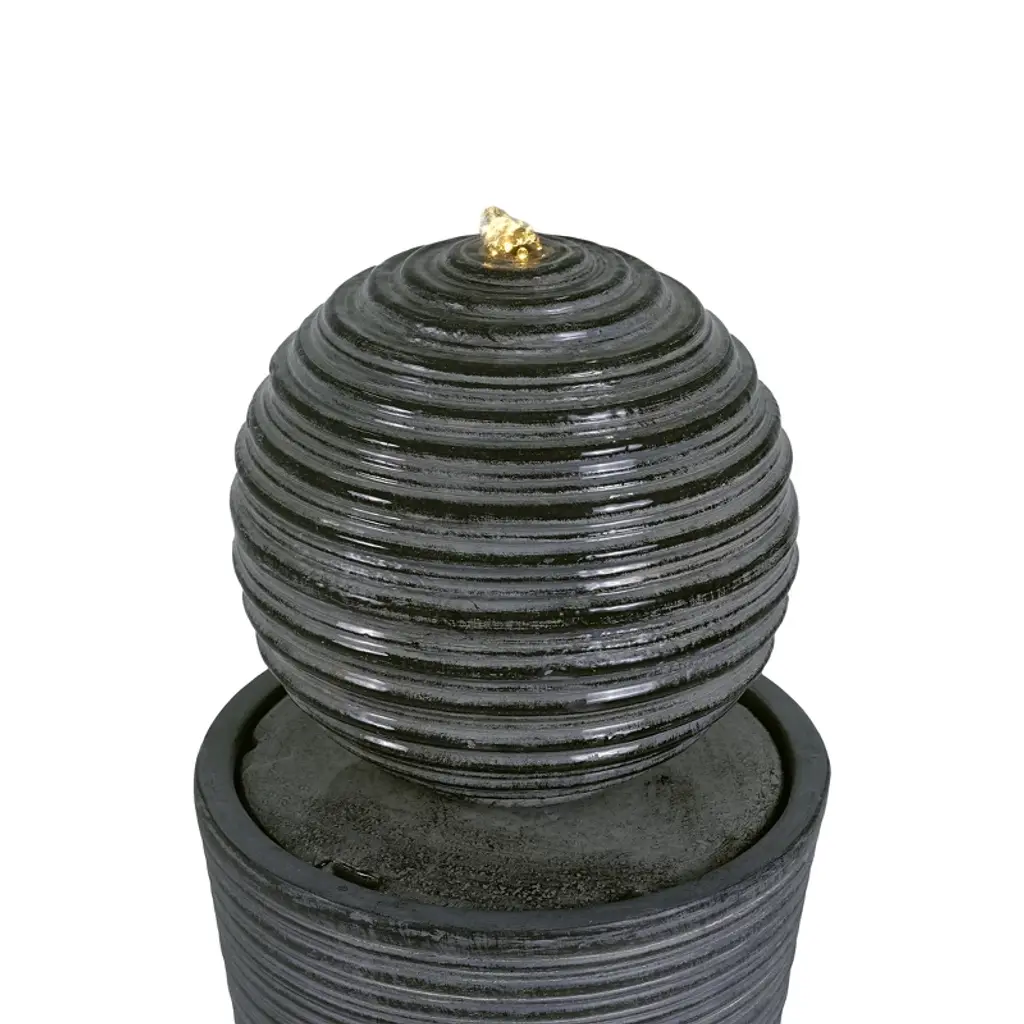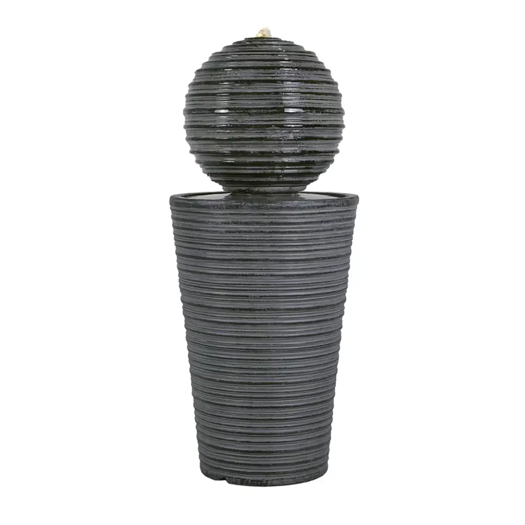 This modern outdoor fountain combines sleek style with durable functionality, making it a perfect addition to any garden, patio, or courtyard. Its contemporary striped column design adds elegance and sophistication, while the built-in LED lights create captivating illumination, transforming the fountain into a glowing centerpiece, day or night. With an adjustable water flow feature, you can easily customize the soothing sound of cascading water to match your desired ambiance. Crafted from strong, weather-resistant concrete, this fountain ensures long-lasting stability, while its easy assembly offers hassle-free setup and enjoyment. Main Material: Concrete Assembly Required Dimensions: 13.58''D X 13.58''W X 31.50''H Water Capacity: 0.16 gallons Power Source: Plug-in Plug Type: Type A Voltage: 120 Volt