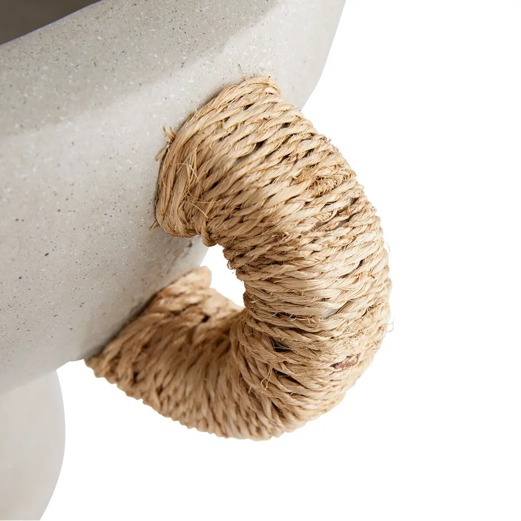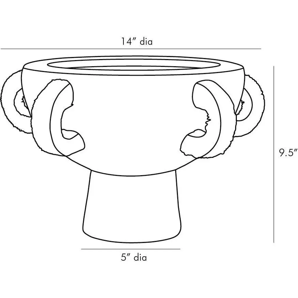 Natural materials play in our Clyde Centerpiece to create a novel aesthetic. Terracotta is molded into an almost kylix-shaped piece and finished in fossil gray before being fashioned with five abaca-wrapped handles. A stylish and sturdy option for centering a tablescape indoors or in covered outdoor areas.