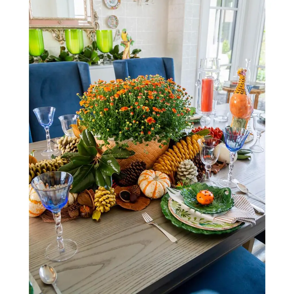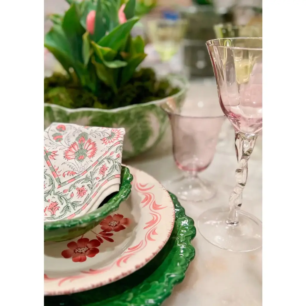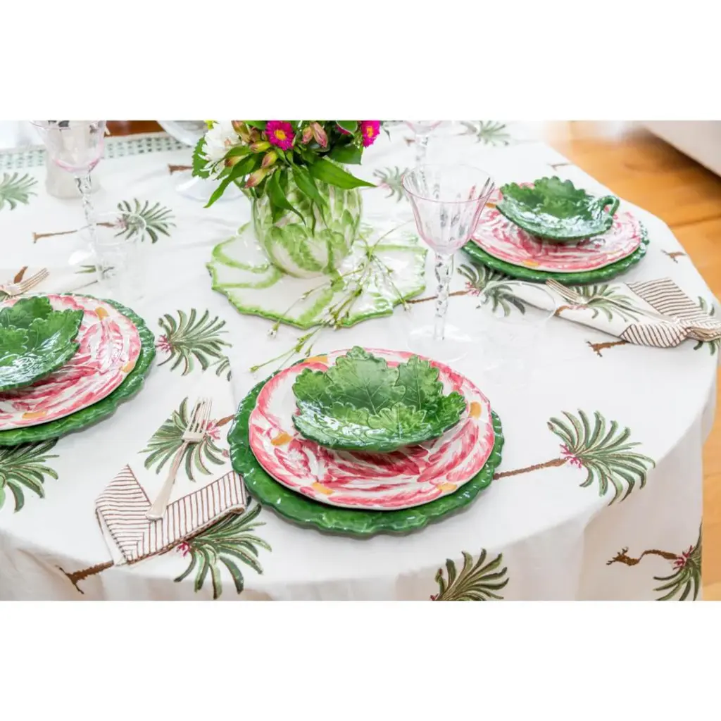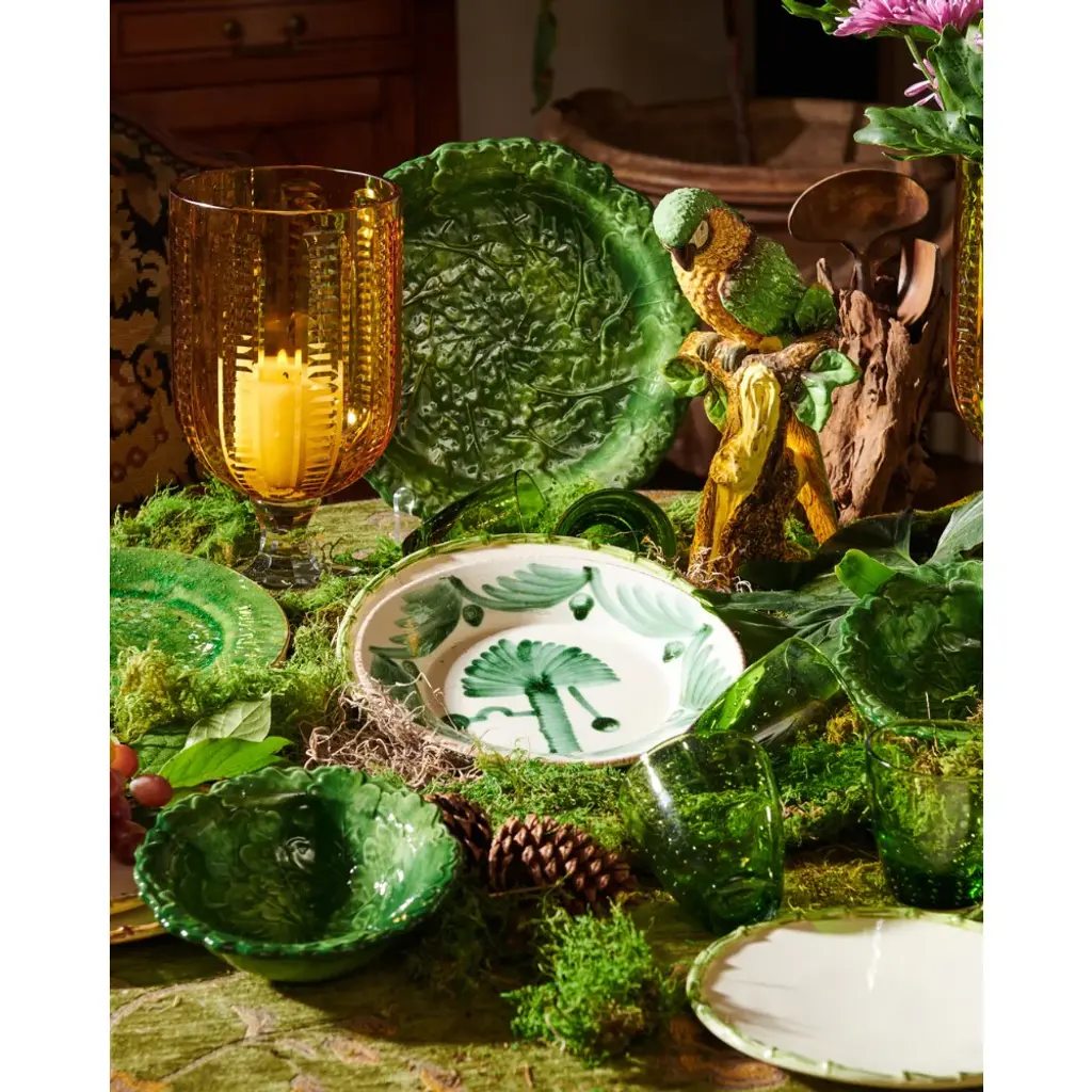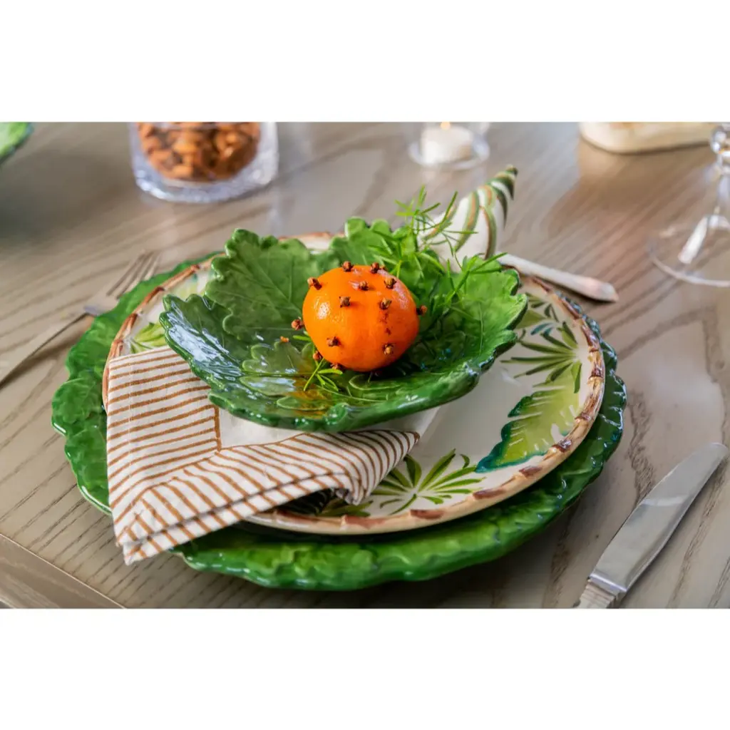 Shades of green adorn the Italian oak leaf charger plate. Create a table of colorful layers to not only entice your gastronomic senses, but also your visual senses.
