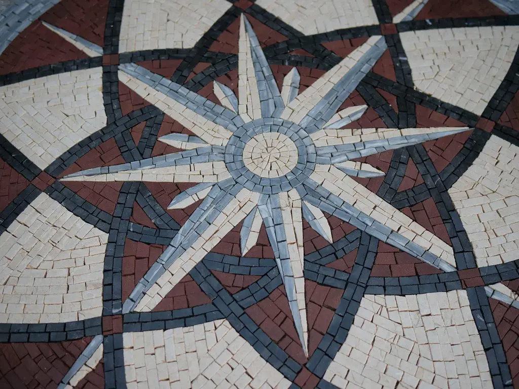 Compass Flower Mosaic Medallion Art - 80cm X 80cm (32" X 32")