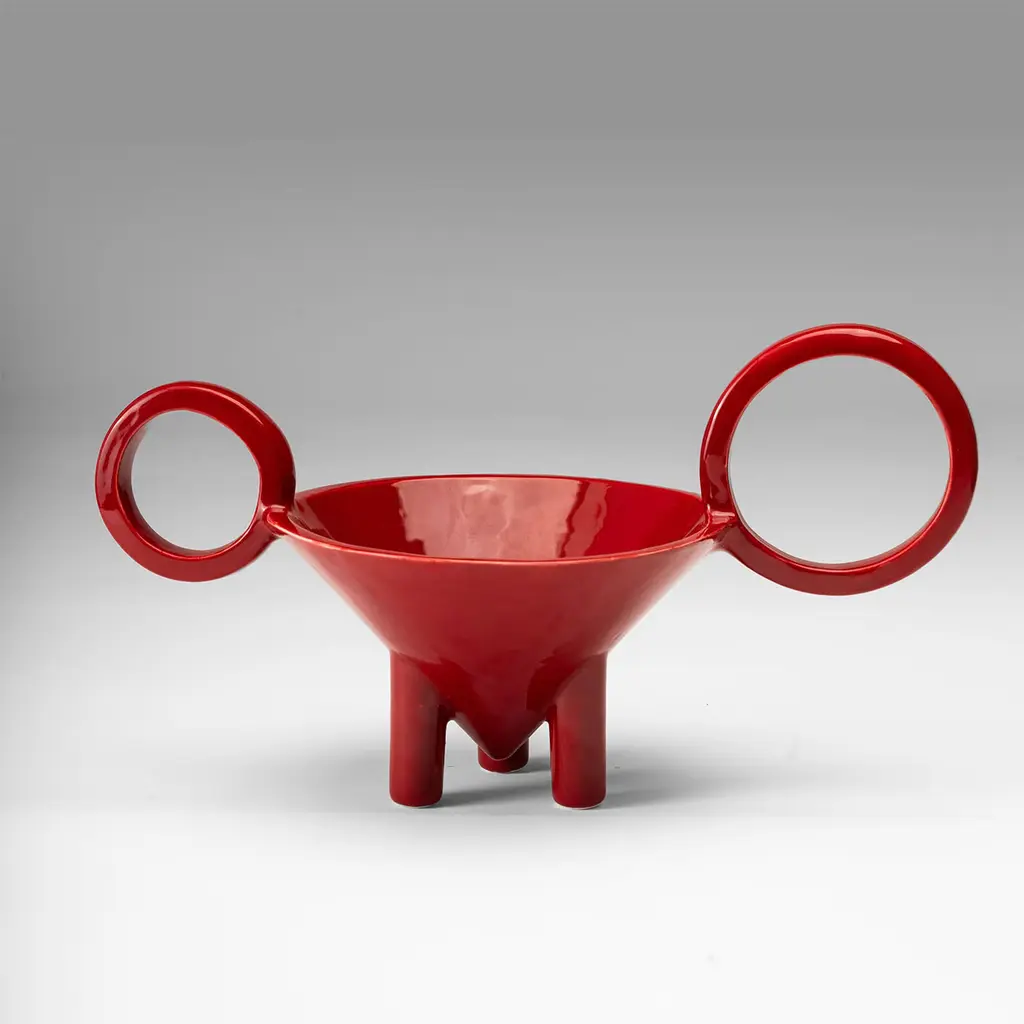The Cono decorative container embodies a striking conical design, making it a versatile focal point for any setting. Crafted from white terracotta and finished with lead-free glazes, this exquisite piece is double-fired at high temperatures, ensuring resilience and a lustrous finish. Its unique geometric shape and bold color options add an artistic touch to home decor, seamlessly enhancing both contemporary and traditional spaces. Ideal as a centerpiece, fruit bowl, or a chic catch-all, the CONO is available in an array of captivating colors and a selection of vibrant hues. Contact the Concierge for further information.