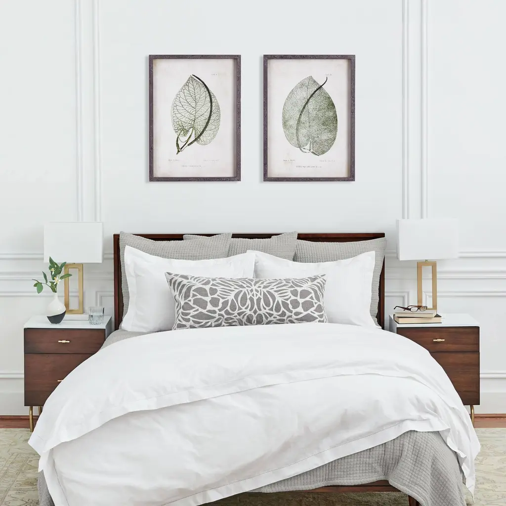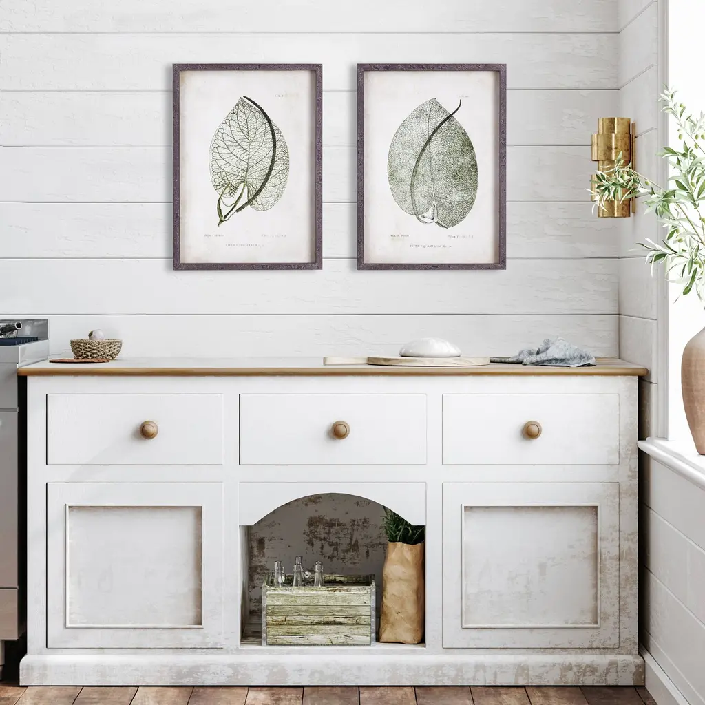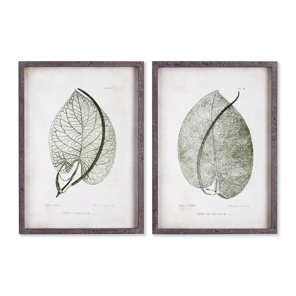 These Cordate, or heart shaped leaves are illustrated with a translucent quality, which brings out their natural beauty. With marbleized gray frames, they make a handsome centerpiece to any room.