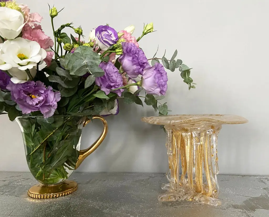"Crystal & Gold" Jellyfish, Murano Glass, Handmade Italy, 2025 Centerpiece