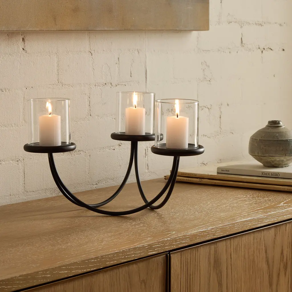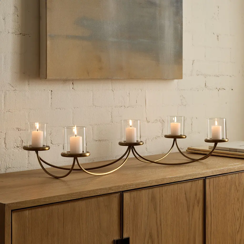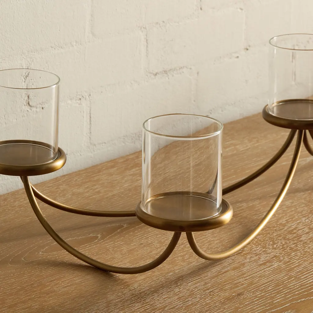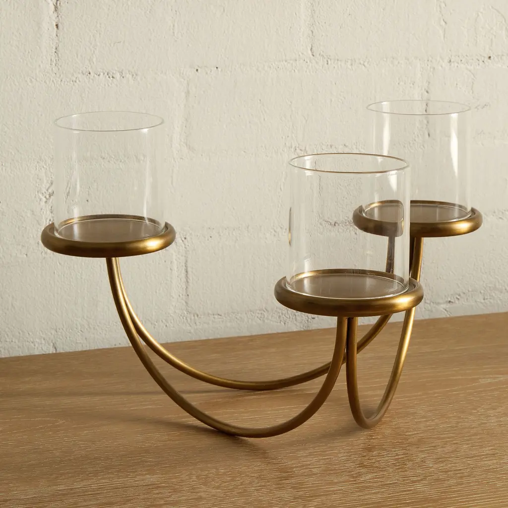 The thin metal frame curves to create a bold, "floating" design. A statement-making display. Keeps votive candles secure and in place when lit. Looks great on mantels, tabletops and desks.