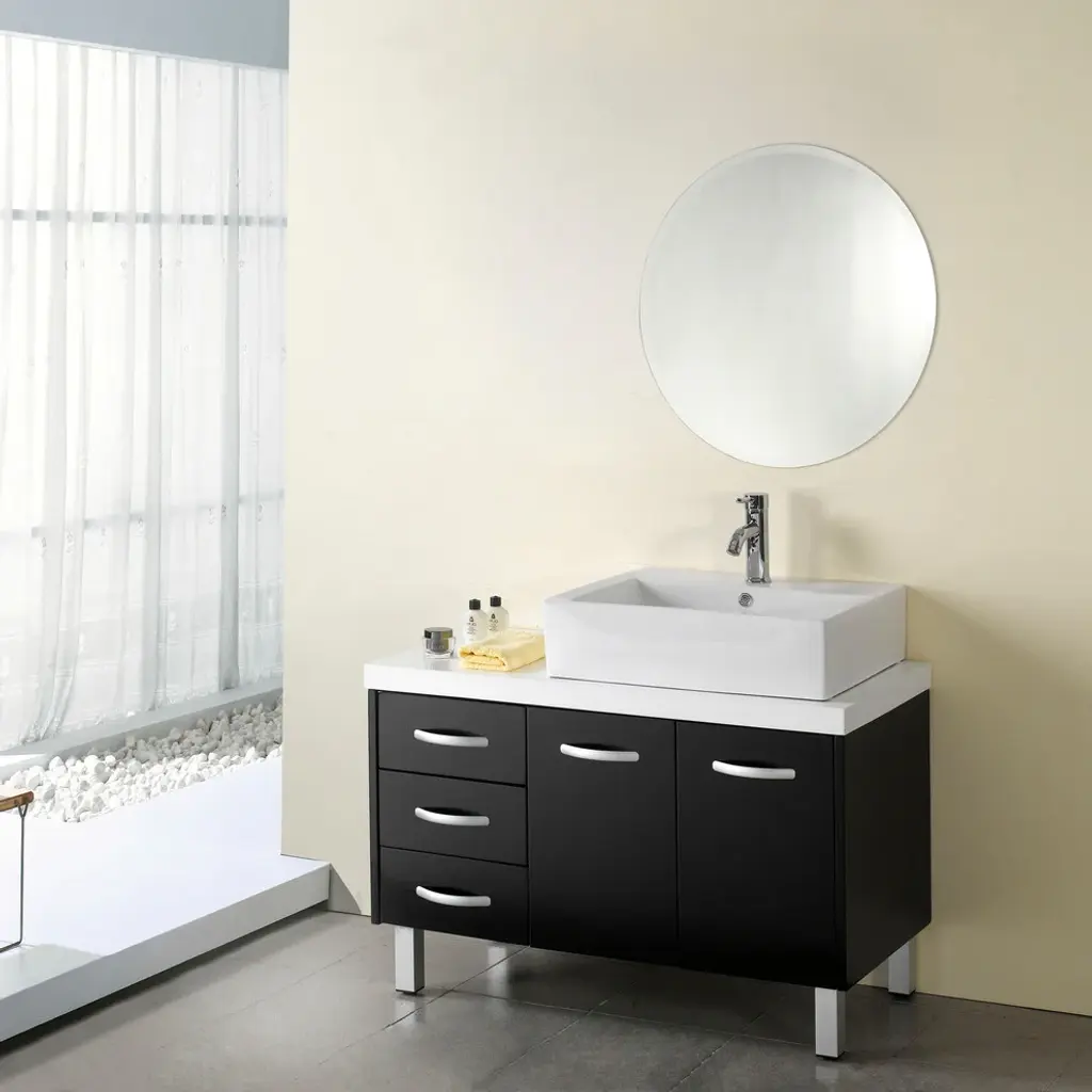 This round shaped frameless mirror has a lovely beveled edge that will complement many decors throughout your home. This piece can be used on a wall or as part of a table centerpiece, creating a stylish atmosphere wherever it is on display.VerticalIndoor Setting