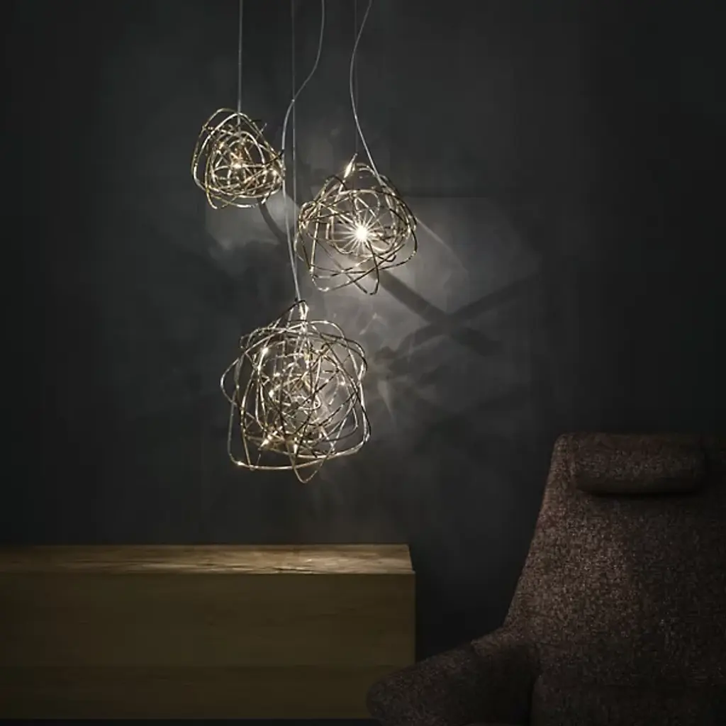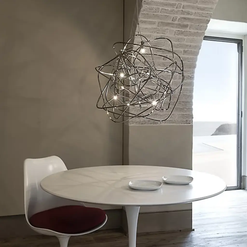 A lively and engaging look unlike any other. The Doodle LED Suspension by Terzani uses a chaotic bent Metal design that is handcrafted so that each piece is unique in the way it bends and curves. This ensemble of different geometric forms comes together to create unmatched play between light and dark, brightness and shadow. Add an adjustable LED lamp at its core and you have unmatched customization available at your fingertips. This fixture helps to pull together diverse design elements into one cohesive contemporary inspiration. It’s the perfect suspension for dining areas, centerpiece kitchen islands, and so much more.