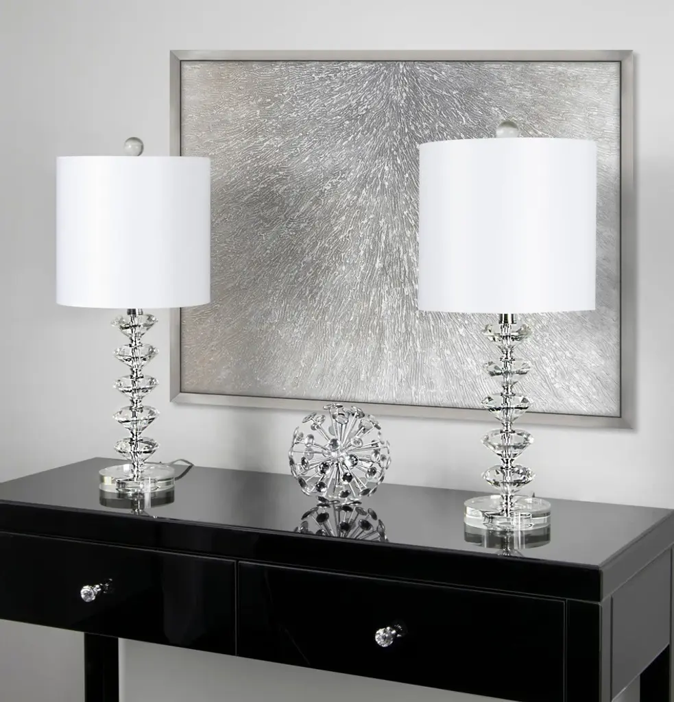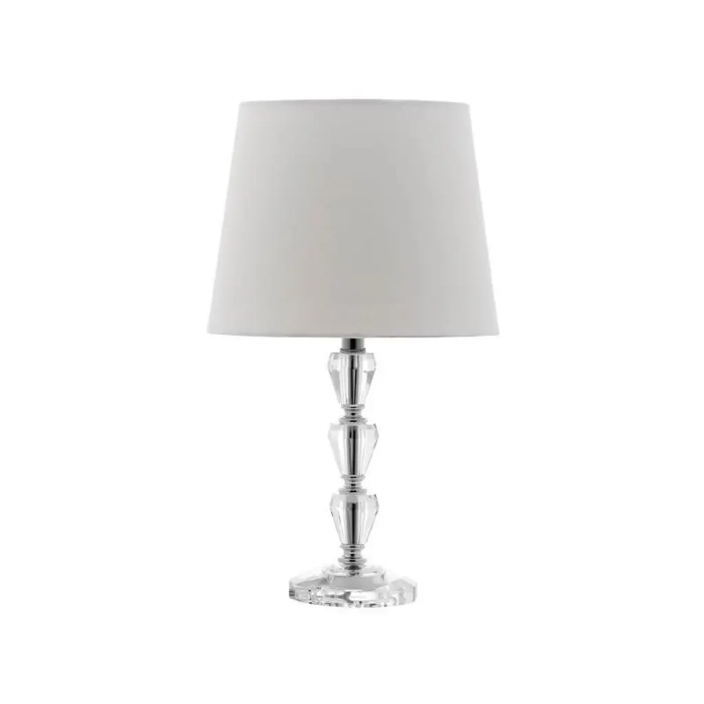 Illuminate your space with elegance and charm using the Dylan tiered crystal orb lamp. This exquisite piece features a refined clear crystal base that gracefully supports a classic white shade. The timeless combination of clear and white complements a variety of d�cors, making it a versatile addition to any room. Crafted with precision, the crystal orbs add a touch of sophistication and shine to your living area. Whether it is placed on a bedside table or a living room sideboard, this lamp enhances your home with its warm and inviting glow. Transform your environment and enjoy the serene ambiance created by this stunning lighting solution. Make the Dylan tiered crystal orb lamp a centerpiece in your home and experience the allure it brings to your space.
