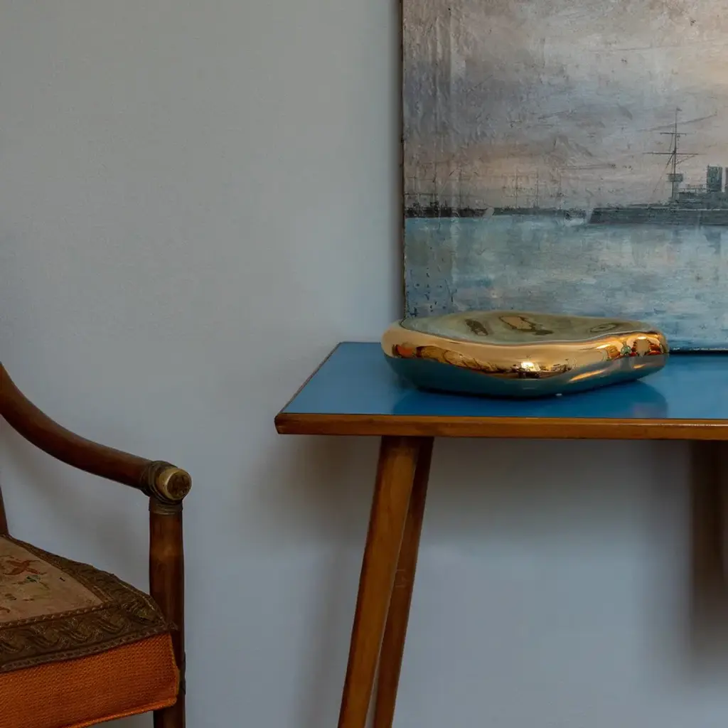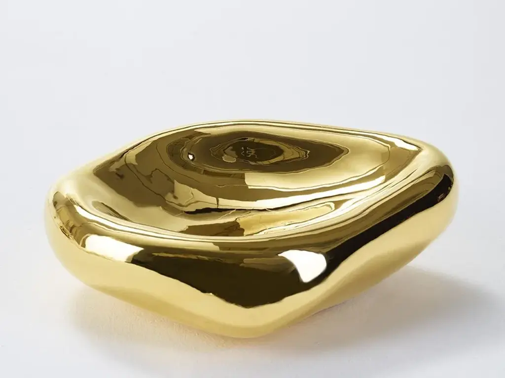 Ceramic centrepiece of smooth shape. Finishing: glossy gold