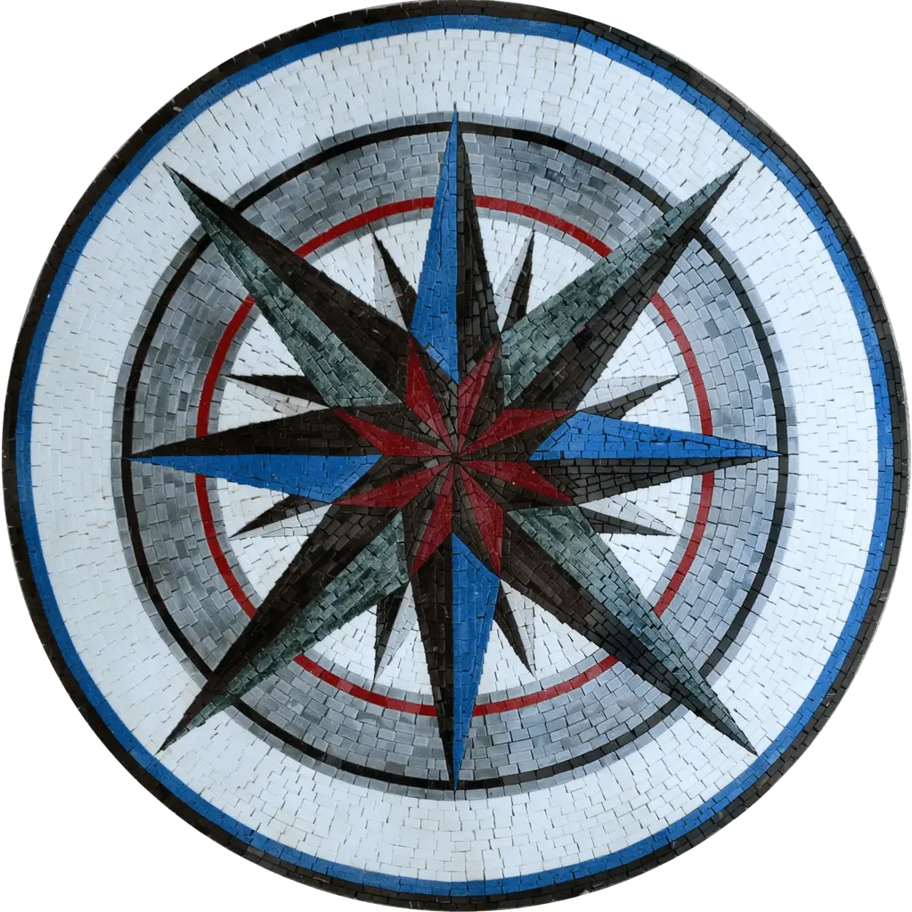 Everywhere Compass- Mosaic Medallion Art - 80cm X 80cm (32" X 32") / With Frame